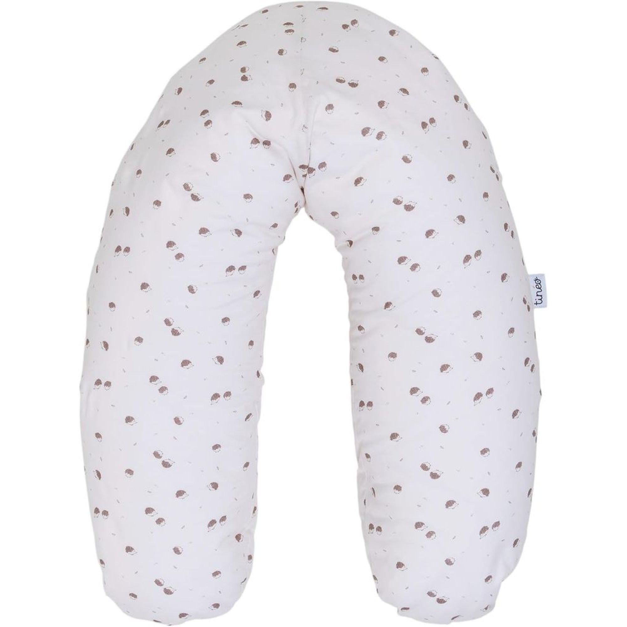Optez pour le coussin de maternité et d'allaitement Jersey coton écru / hérissons de la marque Tinéo. Ce coussin 2 en 1 est garni de microbilles.
