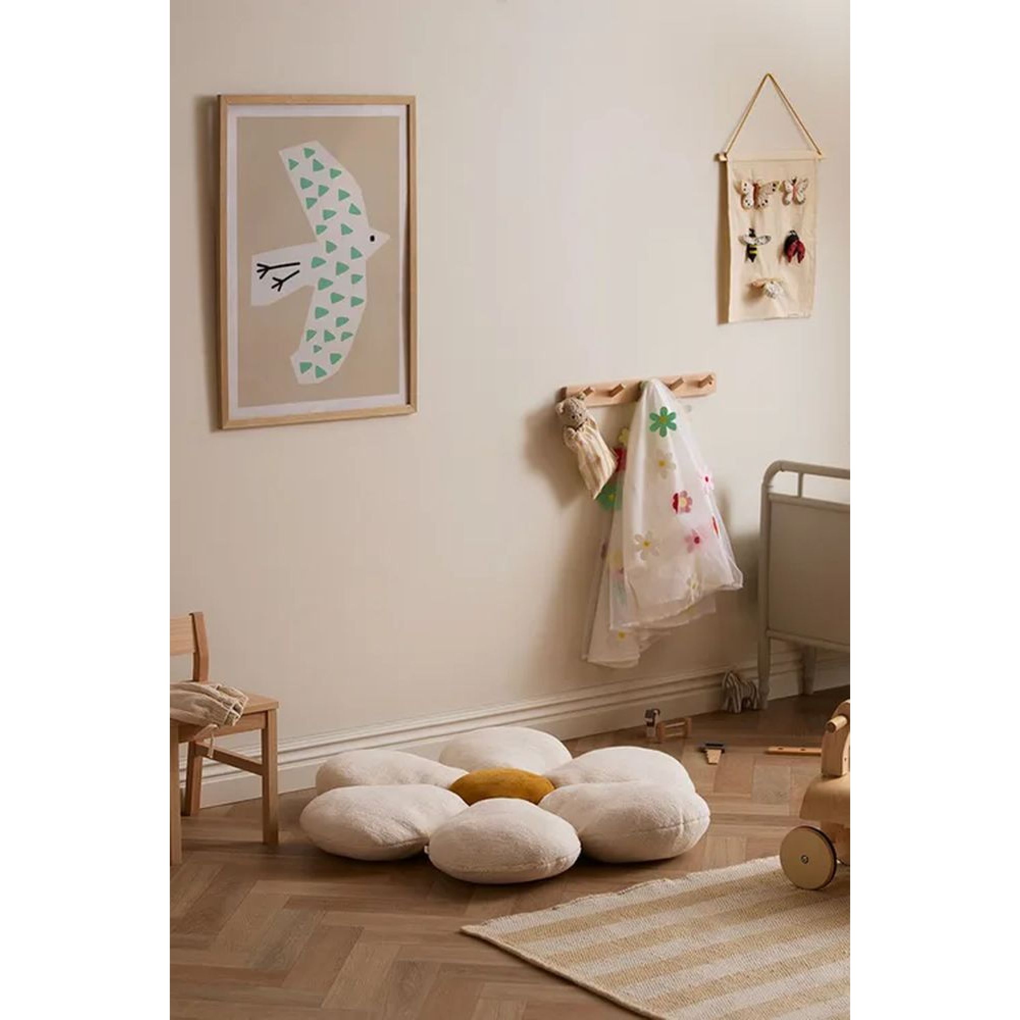 Choisissez ce magnifique tapis de sol modèle fleur de la marque Kid's concept. Ce tapis est matelassé et rembourré pour apporter plus de confort à la zone de jeu de votre enfant . Rempli de polyester recyclé et fabriqué avec des matériaux certifiés OEKO-TEX, ce coussin de sol allie des textures douces à une fonctionnalité simple. Les pétales sont fabriqués en sherpa doux au toucher, un mélange de coton structuré avec une texture chaude, semblable à de la laine, qui invite au toucher. Le centre (ou disque floral) est en velours de coton lisse pour plus de contraste et de confort . Entretien facile .