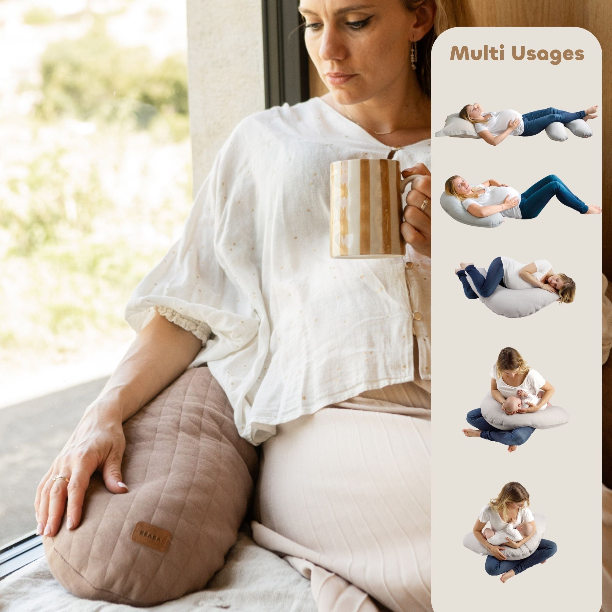 Offrez-vous des moments de confort absolu avec le coussin d’allaitement Big Flopsy Fleur de coton de la marque Béaba, conçu pour accompagner les mamans tout au long de la maternité. Sa grande taille de 170 cm et sa forme ergonomique procurent un soutien optimal du ventre, du dos et des jambes pendant la grossesse. Après la naissance, il devient un coussin d’allaitement idéal, permettant de maintenir bébé confortablement tout en soulageant les bras et les épaules du parent. Son garnissage en microbilles légères et silencieuses assure un maintien stable sans s’affaisser, tandis que sa housse en fleur de coton douce et respirante apporte une sensation cocooning incomparable.