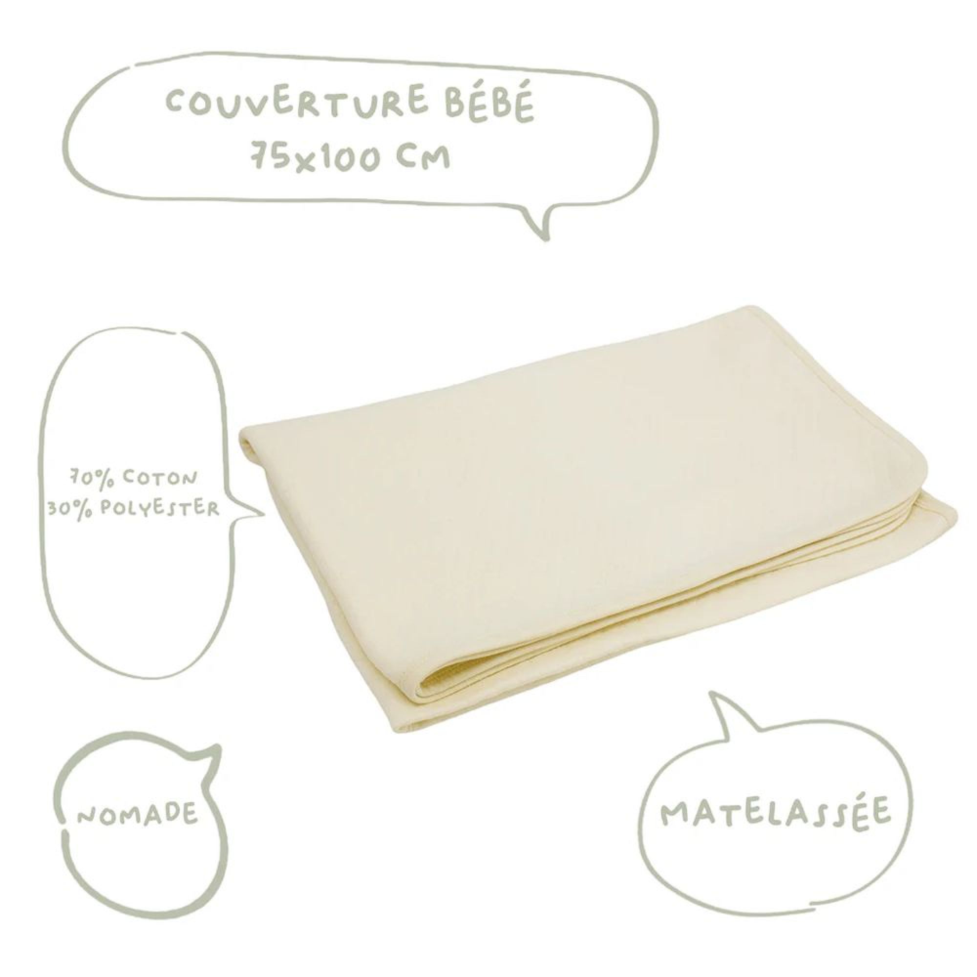 Choisissez cette couverture bébé matelassée coloris écru de la marque Babycalin. Son jersey matelassé associe douceur naturelle et résistance pour un usage quotidien. Agréable au toucher et respirante, elle enveloppe délicatement votre enfant .