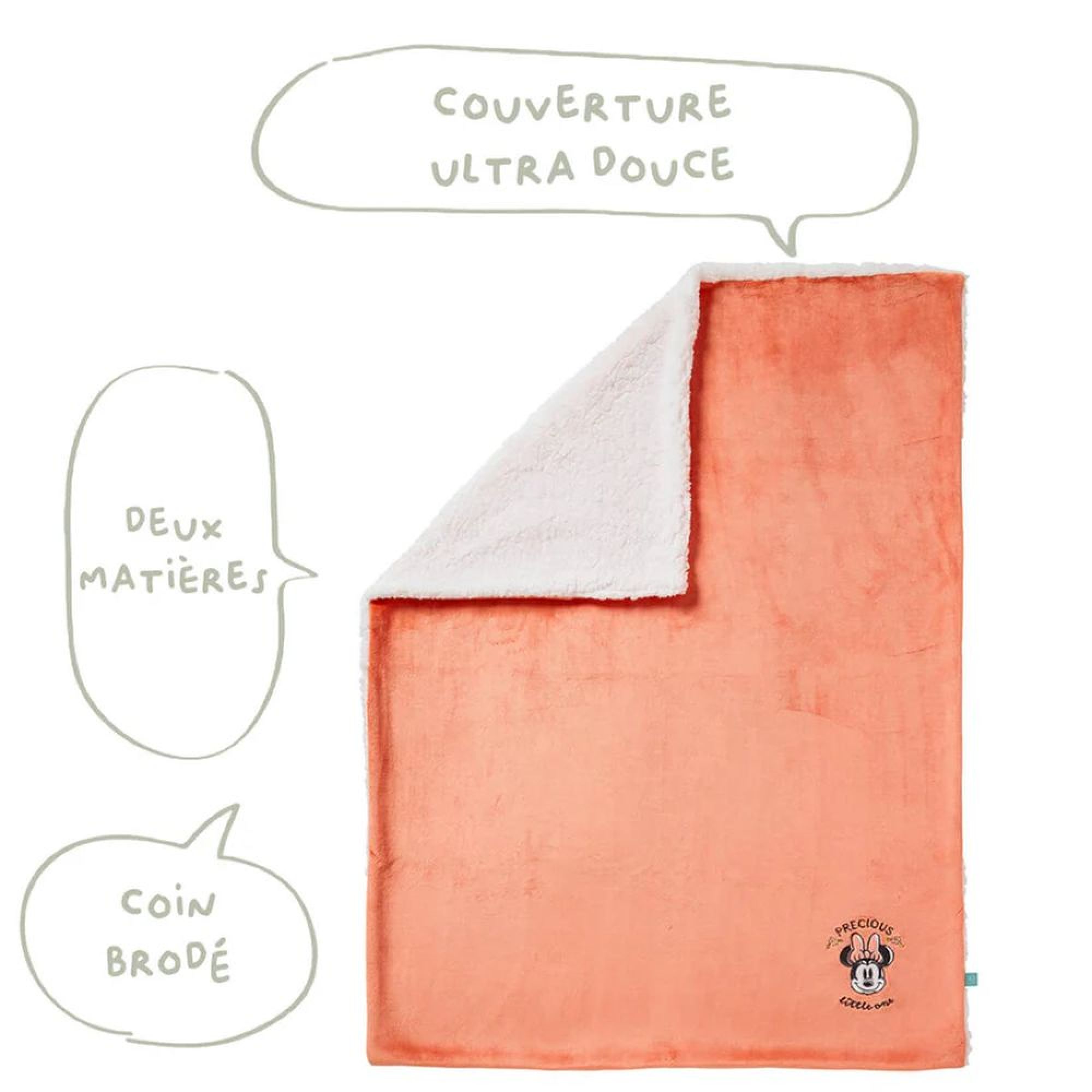 Découvrez cette couverture bébé 75 x 100 cm Minnie de la marque Babycaln. L'accessoire indispensable pour couvrir et maintenir au chaud votre petit bout lors de ses nuits ou sorties. Cette couverture bi-matière possède une face en flanelle et une autre en sherpa.