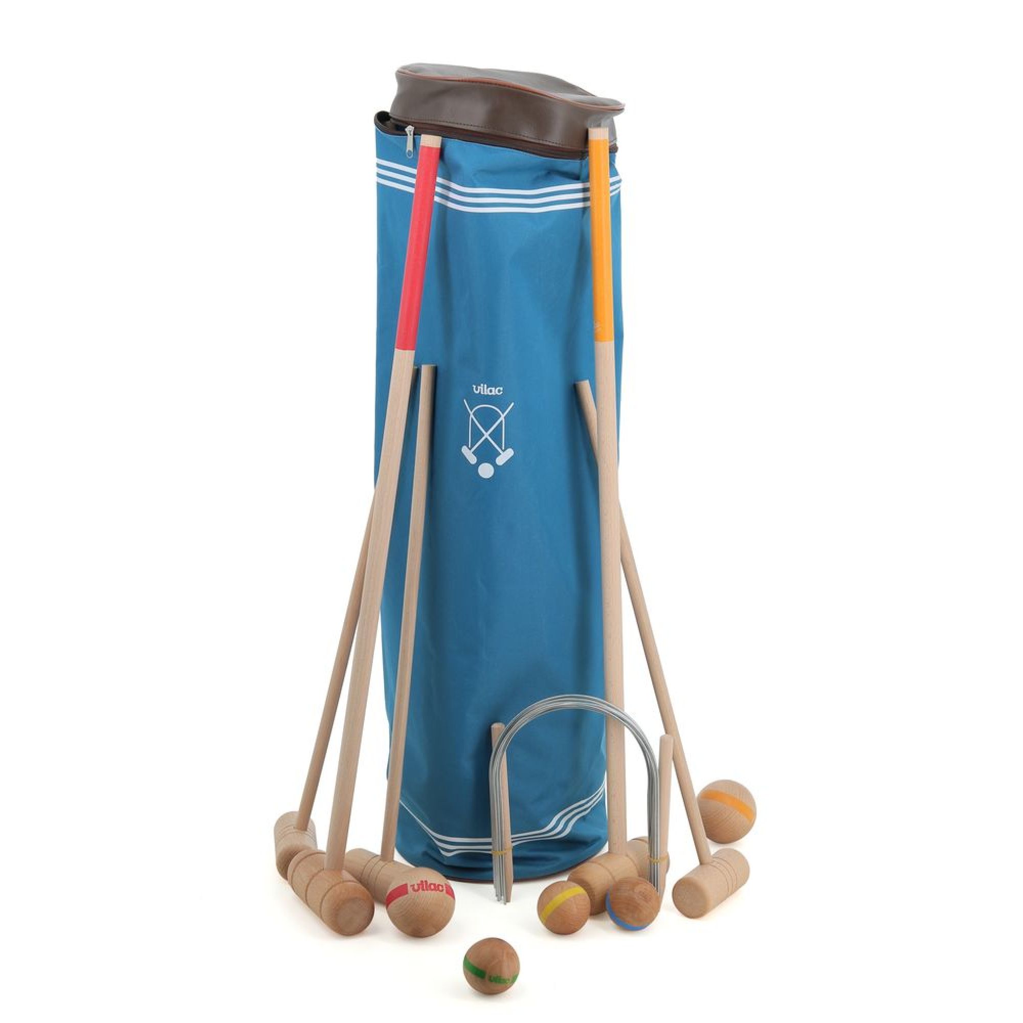 Laissez vous tenter par le jeu de croquet en bois familial de la marque Vilac. Ce jeu classique de plein air permettra de rassembler toute la famille autour d'une partie. Les maillets sont très faciles à prendre en main.