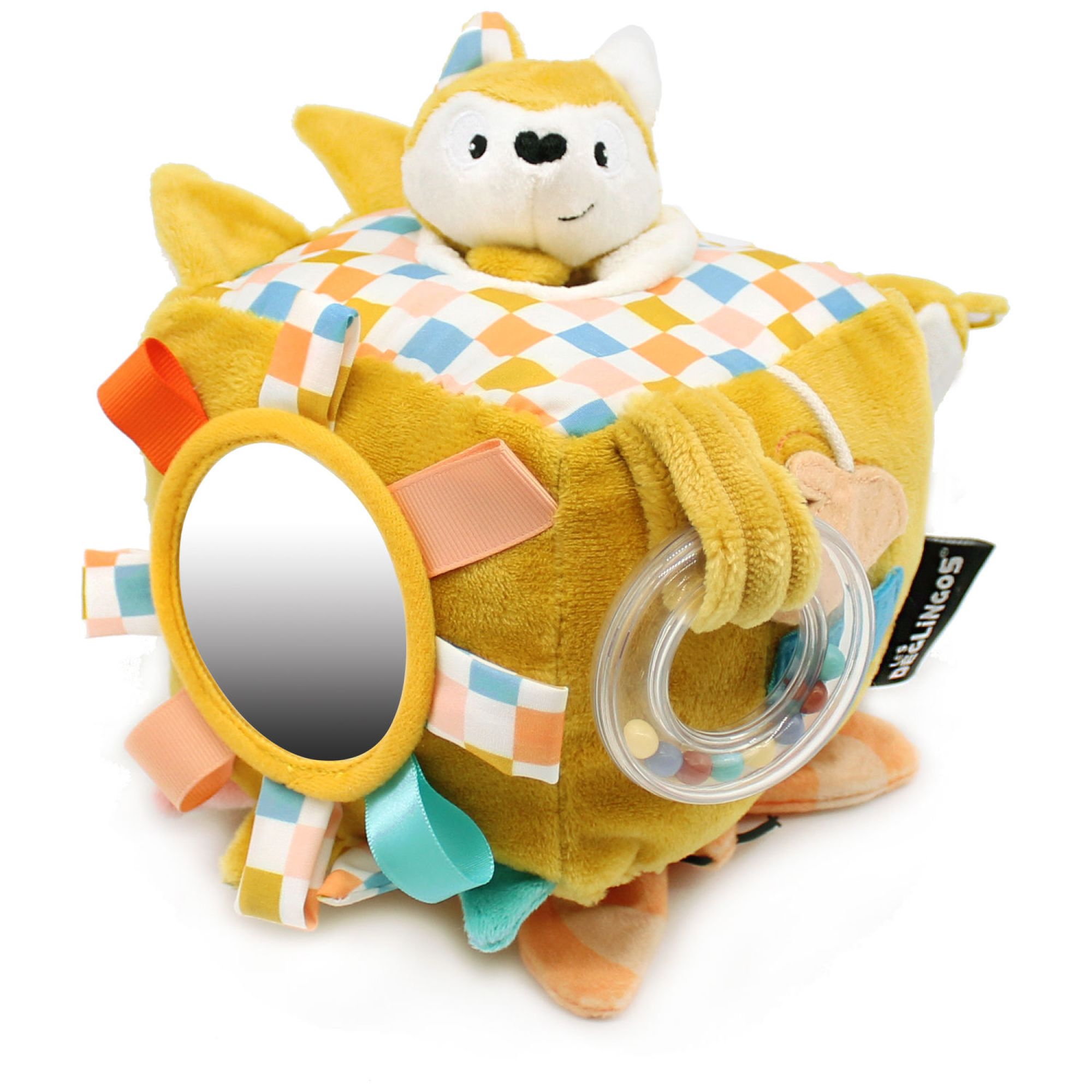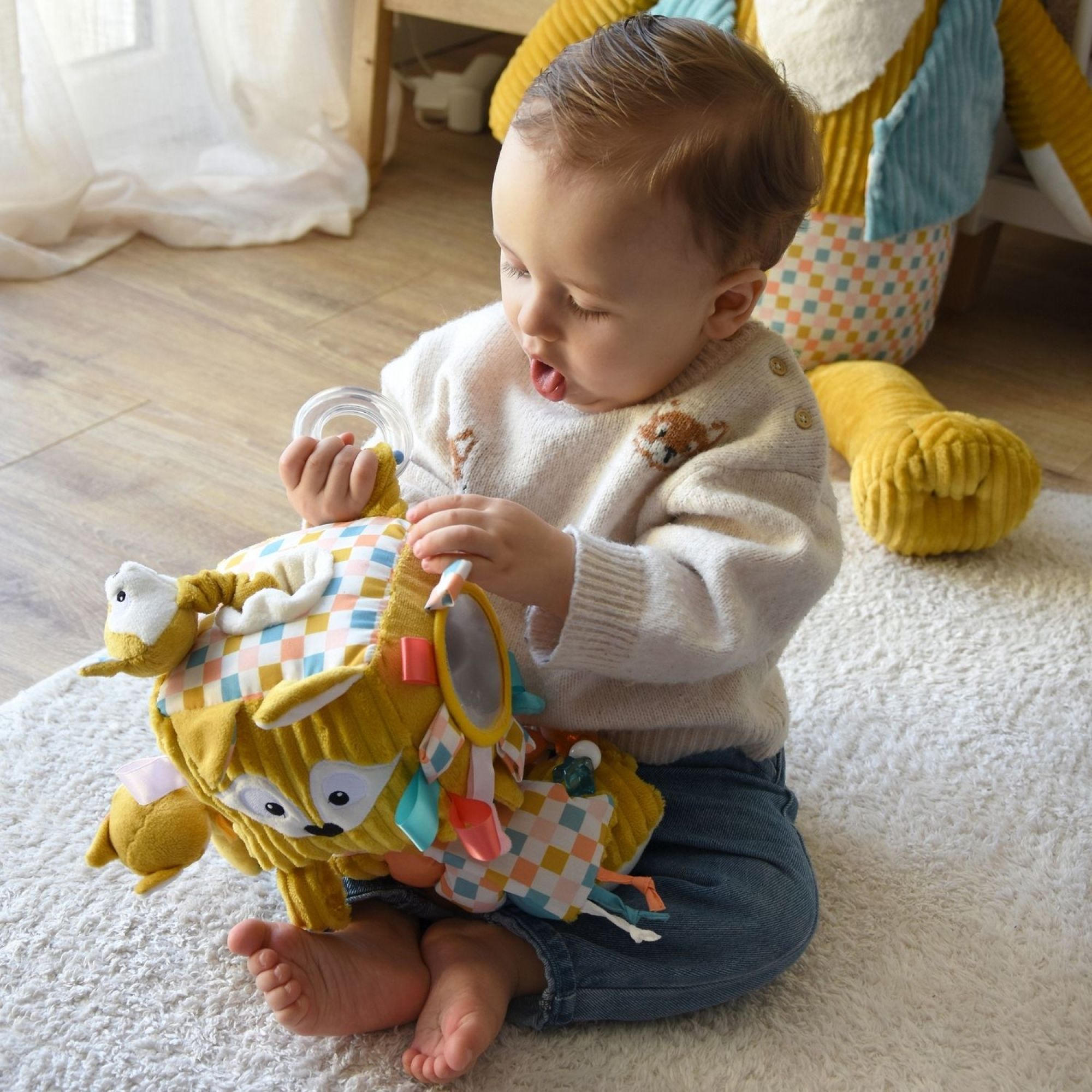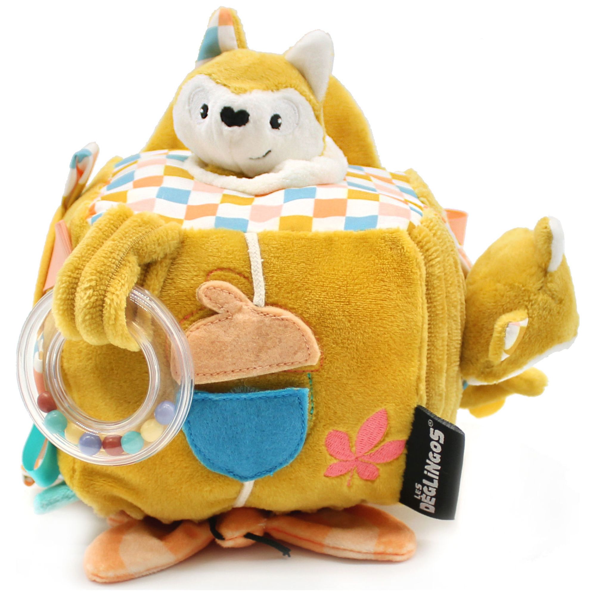 Découvrez ce magnifique cube d'activités Cyranos le Renard de la marque Les Déglingos. Qu'il soit dans son parc ou sur son tapis d'éveil, votre petit bout aura tout le loisir de s'amuser avec ce jouet d'éveil coloré. Il pourra éveiller tous ses sens grâce au miroir, au papier bruissant, au hochet et avec l'anneau de dentition. Il est disponible en plusieurs modèles et s'accordera parfaitement aux autres produits de la même collection. Il sera le cadeau de naissance idéal !