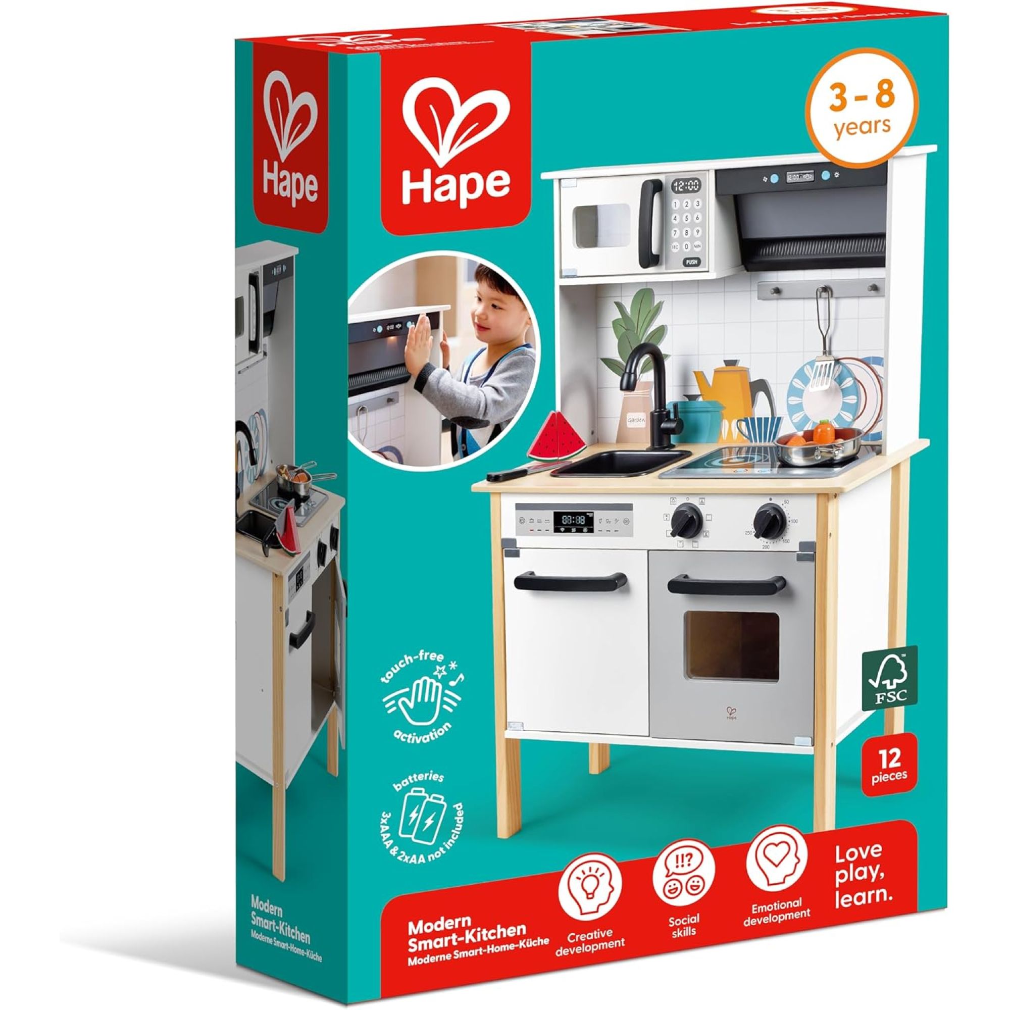 Découvrez la cuisine interactive enfant en bois Hape transforme le jeu d’imitation en une expérience immersive et éducative. Dotée de sons et lumières réalistes, elle permet aux enfants de reproduire les gestes du quotidien : préparer, cuire, mélanger et ranger comme les grands. Un geste de la main suffit pour allumer la hotte, tandis que la plaque de cuisson s’illumine et émet des sons de friture et d’ébullition pour un effet ultra-réaliste. Ce jouet complet favorise la motricité fine, la coordination œil-main et le développement du langage, tout en stimulant l’imagination et la créativité.