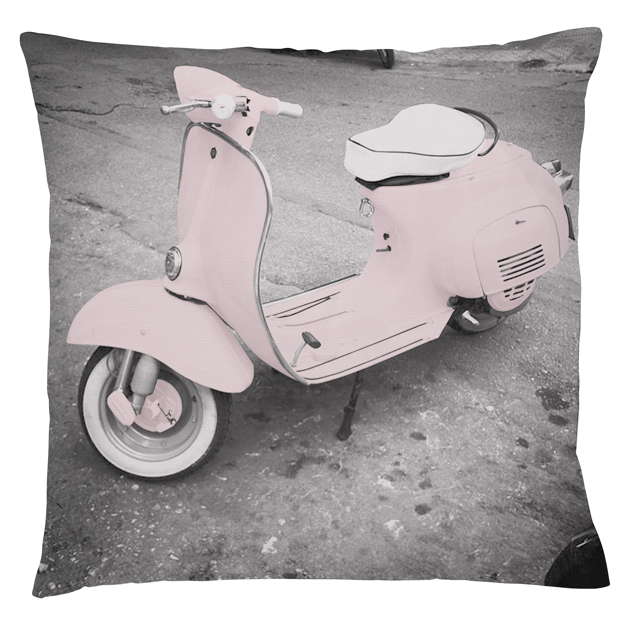 Joli coussin gris qui plaira à tous les amateurs de Vespa. Dans un salon, une chambre d'enfant ou d'adulte, ce coussin fera toujours son petit effet !