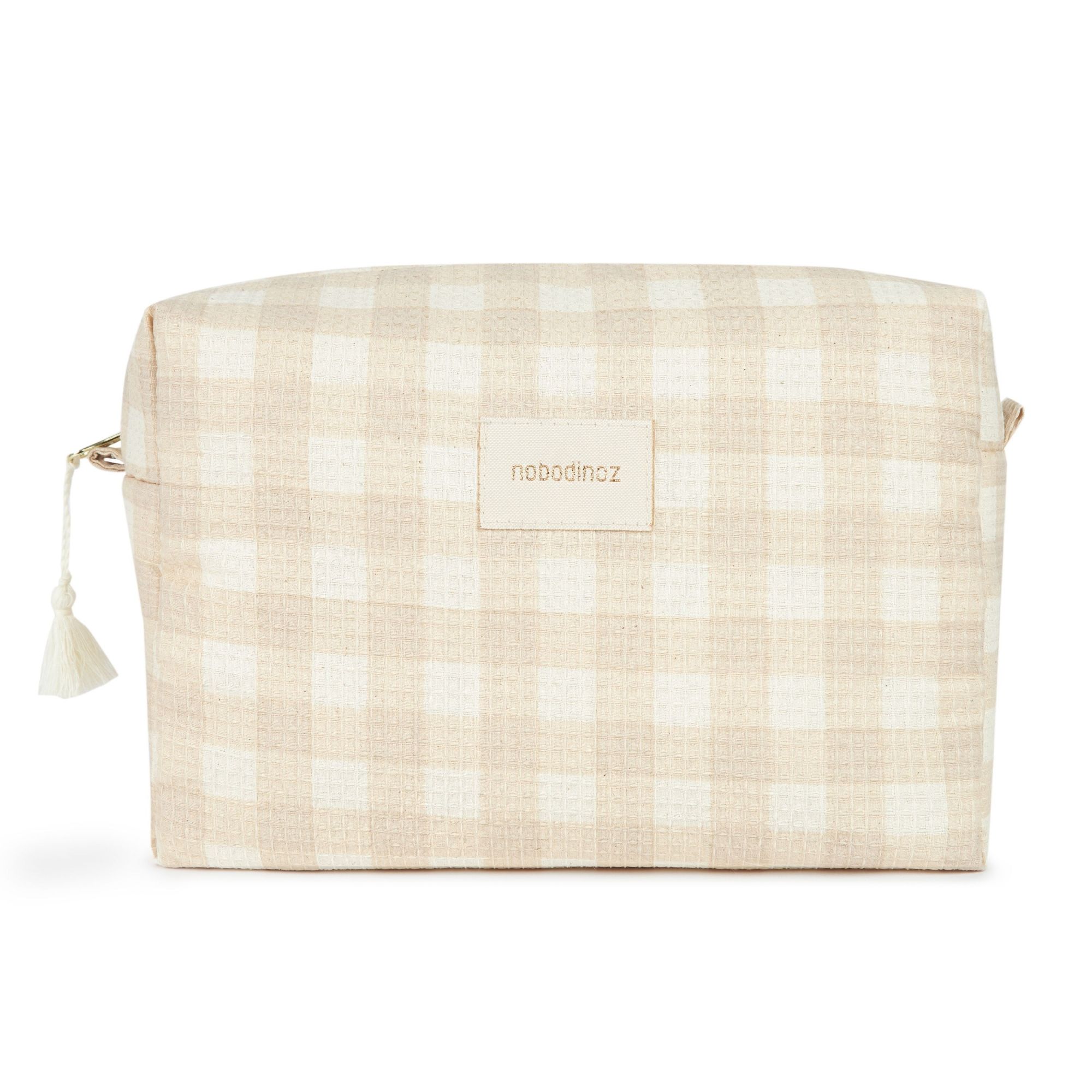 Craquez pour la trousse de toilette Diva Ivory Checks de la marque Nobodinoz. En coton nid d'abeille bio. Son intérieur imperméabilisé et sa fermeture éclair dorée en font une pochette de toilette coquette et pratique. Elle est large et pratique pour y ranger vos affaires de toilette ou les accessoires de bébé. Elle est disponible en plusieurs coloris.