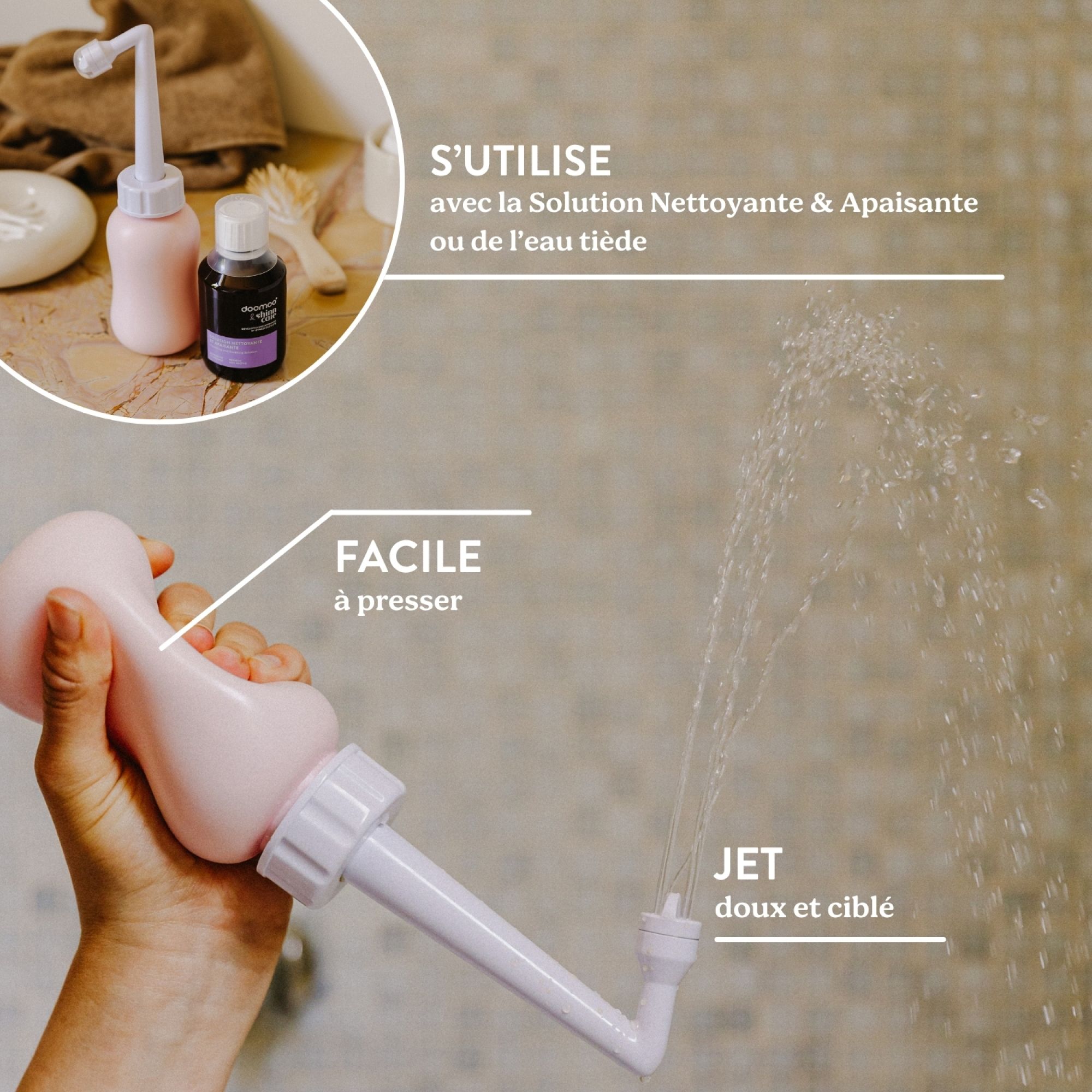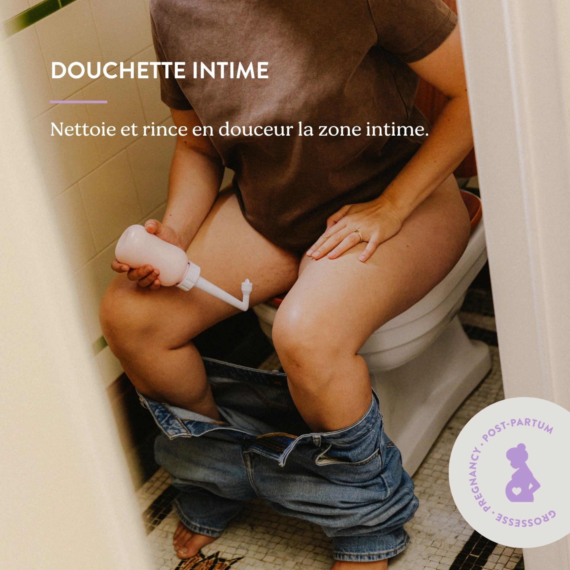 Soulagez et nettoyez en douceur la zone intime après l’accouchement avec la douchette intime ergonomique Shinncare de la marque Doomoo, conçue pour apaiser les inconforts liés à l’épisiotomie, aux déchirures ou aux hémorroïdes. Grâce à son jet ciblé, sa matière souple facile à presser et son embout rétractable, elle permet un rinçage précis sans frottement, à utiliser avec de l’eau tiède ou la solution nettoyante apaisante (vendue séparément). Pratique et nomade avec son pochon inclus, elle accompagne aussi l’hygiène intime quotidienne bien après le post-partum.