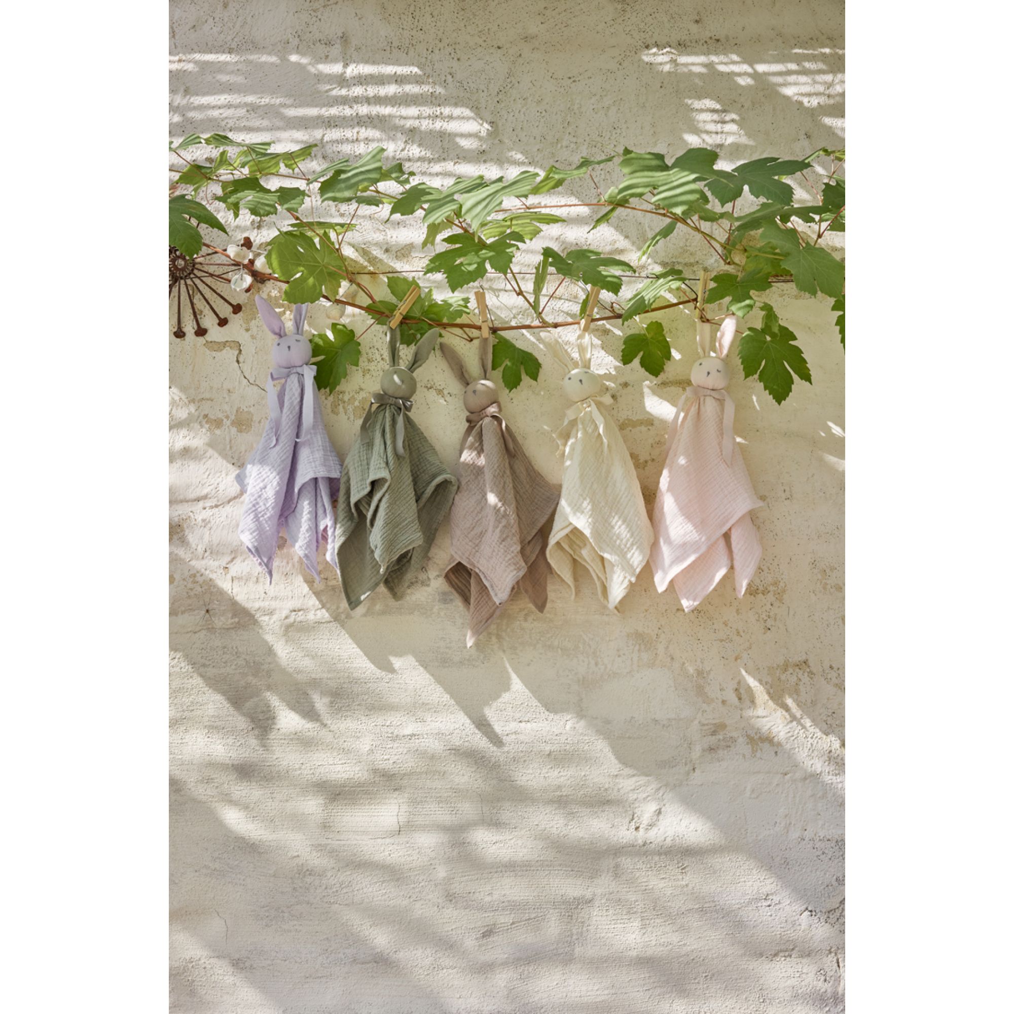 Ce doudou lapin sera un véritable compagnon câlin ! Fabriqué en lange mousseline de coton, il réconfortera votre bébé avec sa douceur et son effet couverture. Votre enfant pourra facilement le saisir par ses oreilles ou son carré en lange. Un copain idéal qui fera un joli cadeau de naissance !