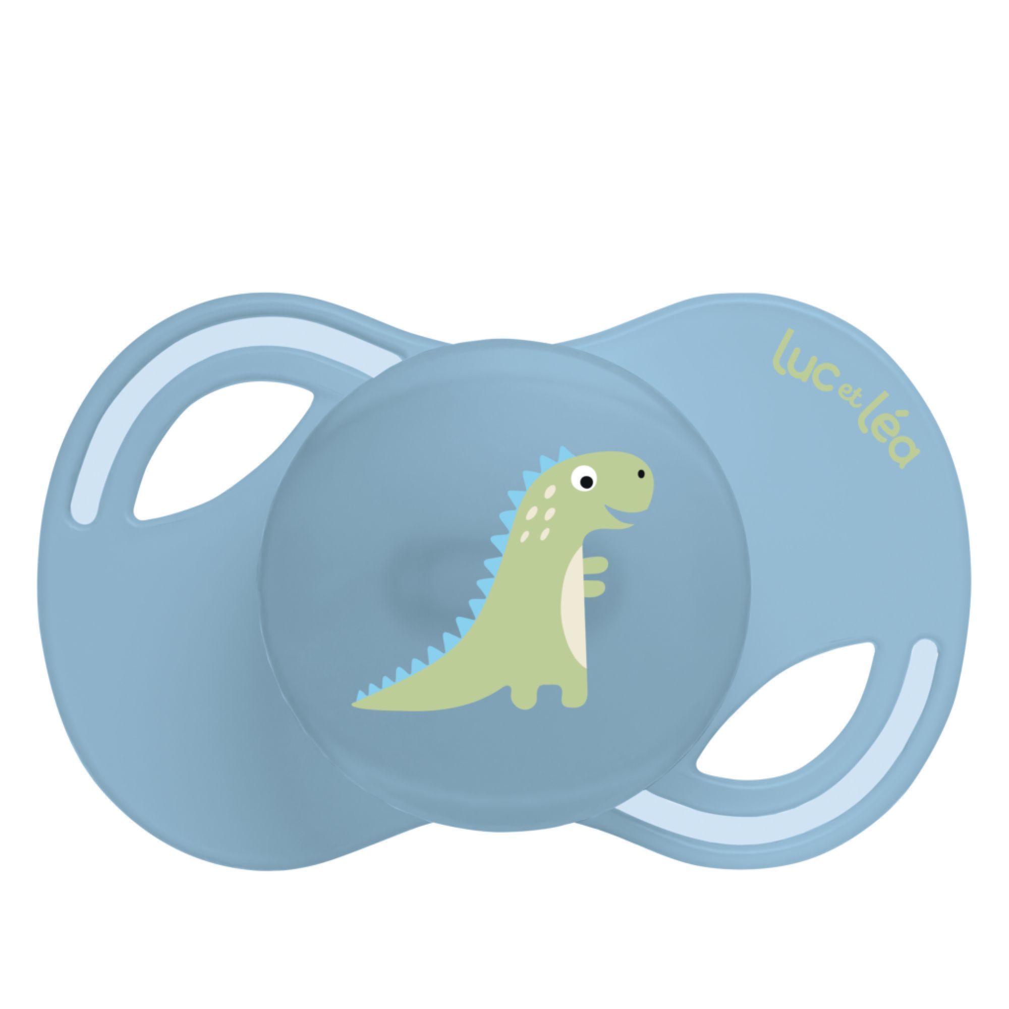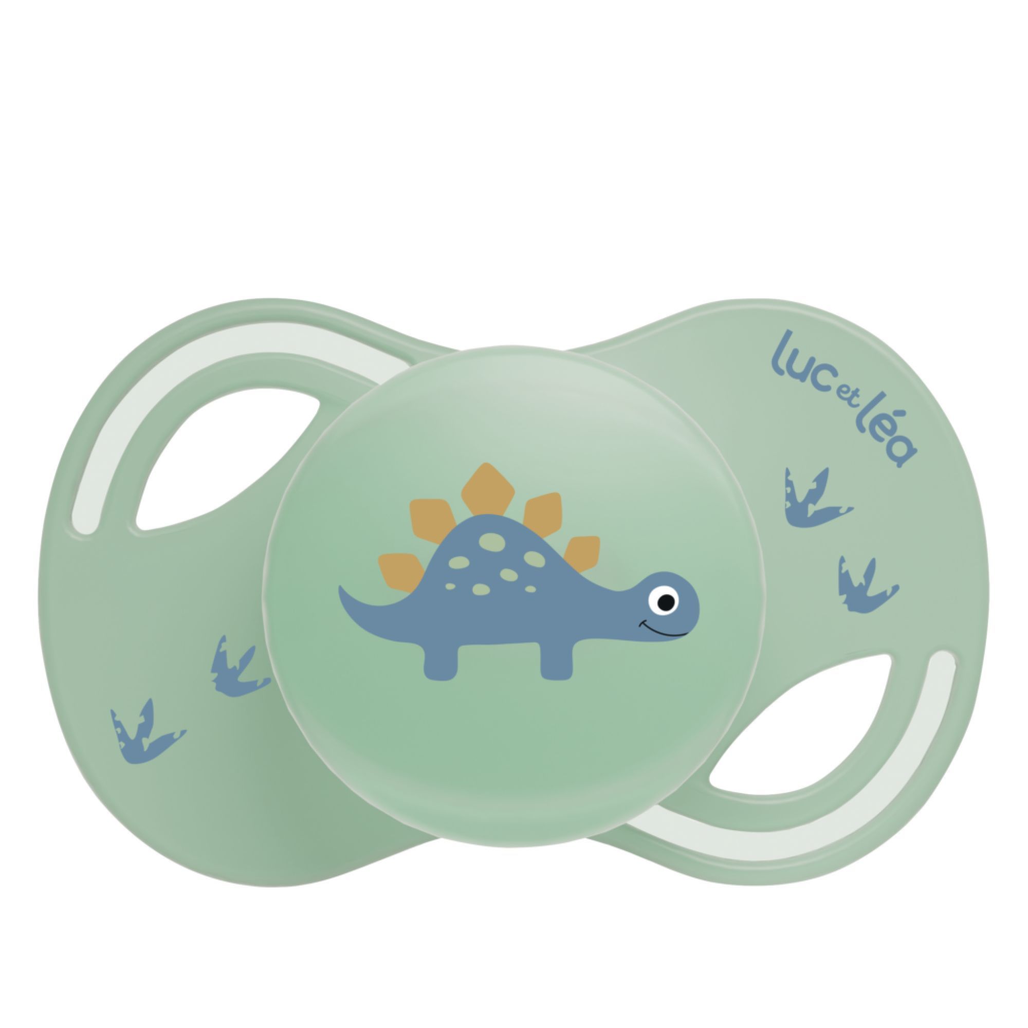 Le duo de sucettes nuit Dinosaures de Luc et Léa se compose de deux sucettes au design tendre. Leur tétine anatomique extra fine en silicone médical préserve la cavité buccale de bébé et assure un confort optimal. La collerette incurvée et légère limite les frottements pour un usage quotidien agréable et sécurisé.