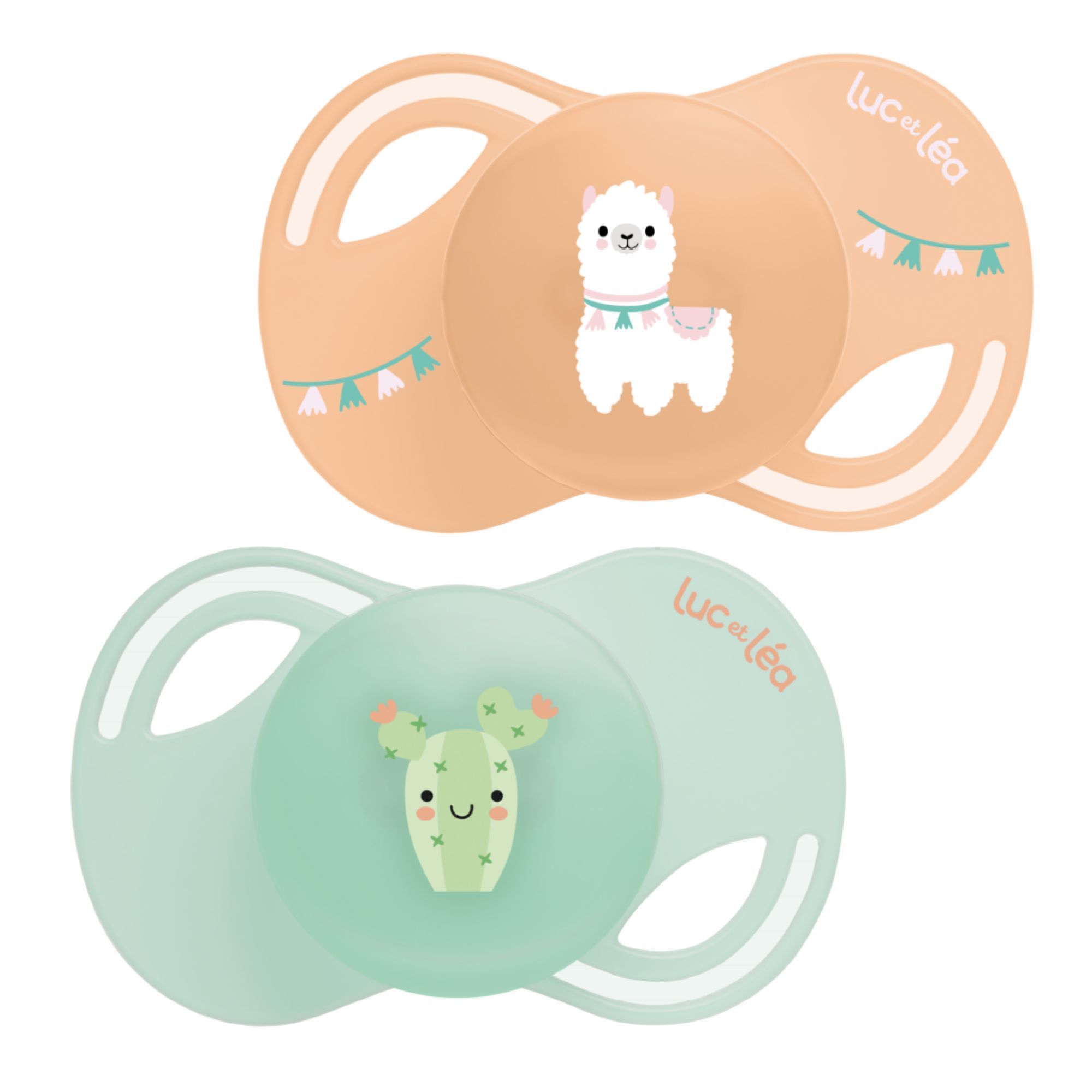 Ces sucettes anatomiques extra fines Luc et Léa sont pensées pour accompagner bébé au quotidien et préserver le bon développement de sa bouche. Grâce à leur téterelle fine et leur design tendre Lama et Cactus, elles allient confort, sécurité et douceur.