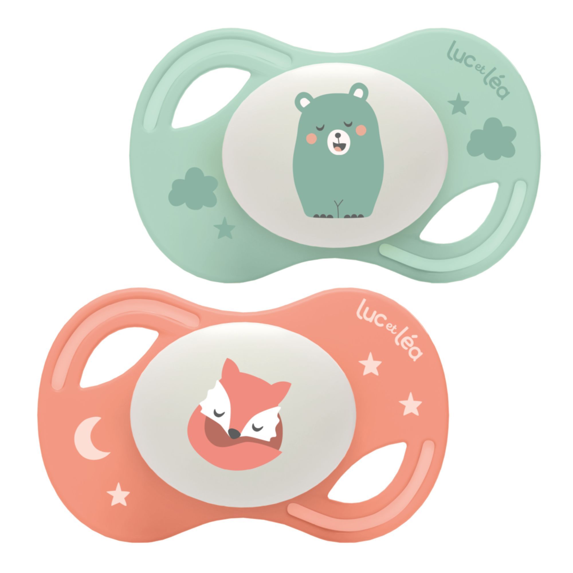 Découvrez les sucettes anatomiques extra fines Luc et Léa, spécialement conçues pour respecter la croissance bucco-dentaire de bébé. Leur embout en silicone doux et leur collerette légère offrent un confort optimal tout en apportant une touche de tendresse avec leurs motifs Renard et Ours