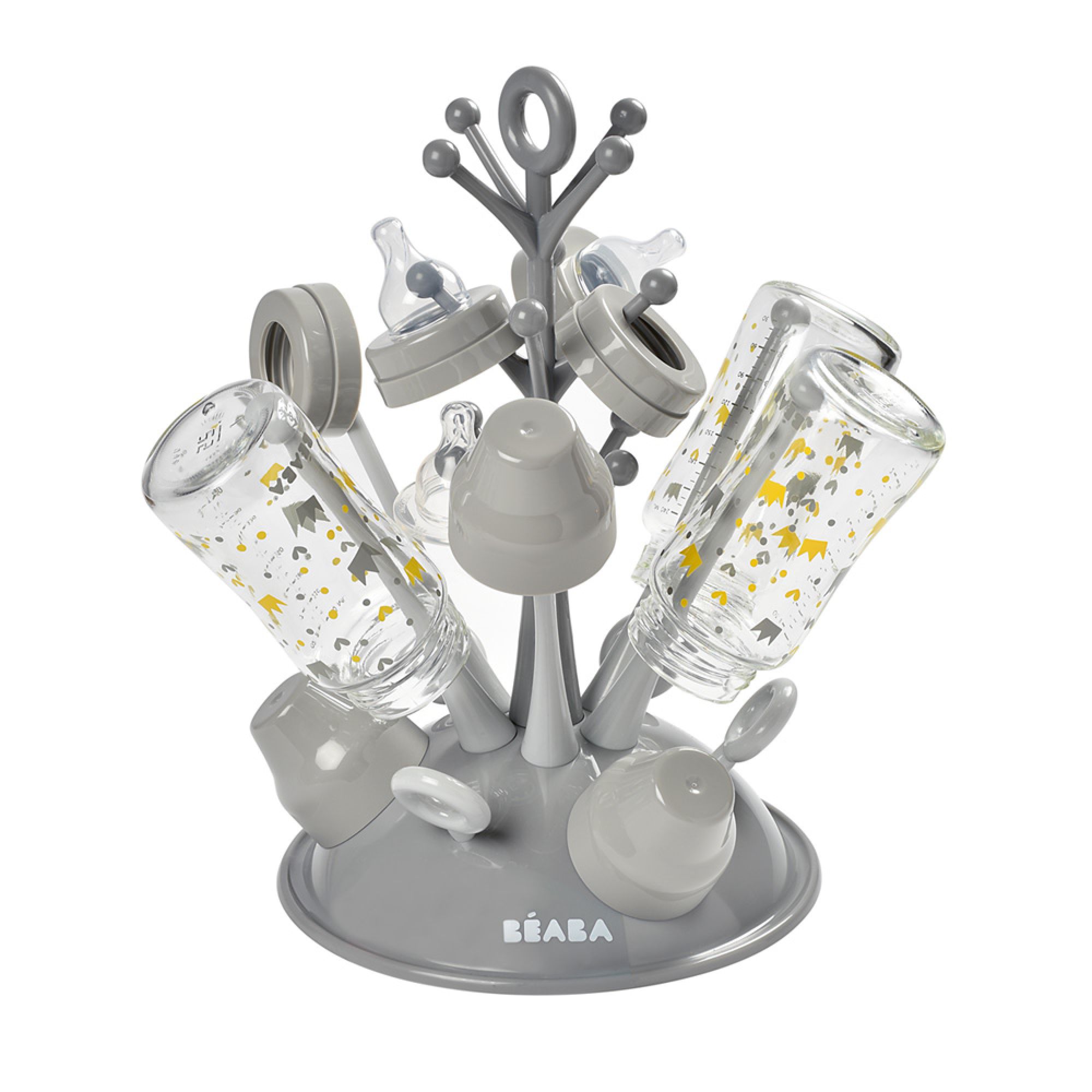 Astucieux et fonctionnel, l’égoutte biberons Arbre de la marque Béaba est conçu pour faire sécher plusieurs biberons et leurs accessoires simultanément, tout en optimisant l’espace sur le plan de travail. Sa forme en arbre permet de suspendre aisément biberons, tétines, bagues et capuchons, pour un séchage rapide à l’air libre. Sa base stable et amovible recueille l’eau de ruissellement pour éviter toute stagnation. Facile à démonter, à vider et à nettoyer, il s’intègre parfaitement dans toutes les cuisines grâce à son design sobre et compact.