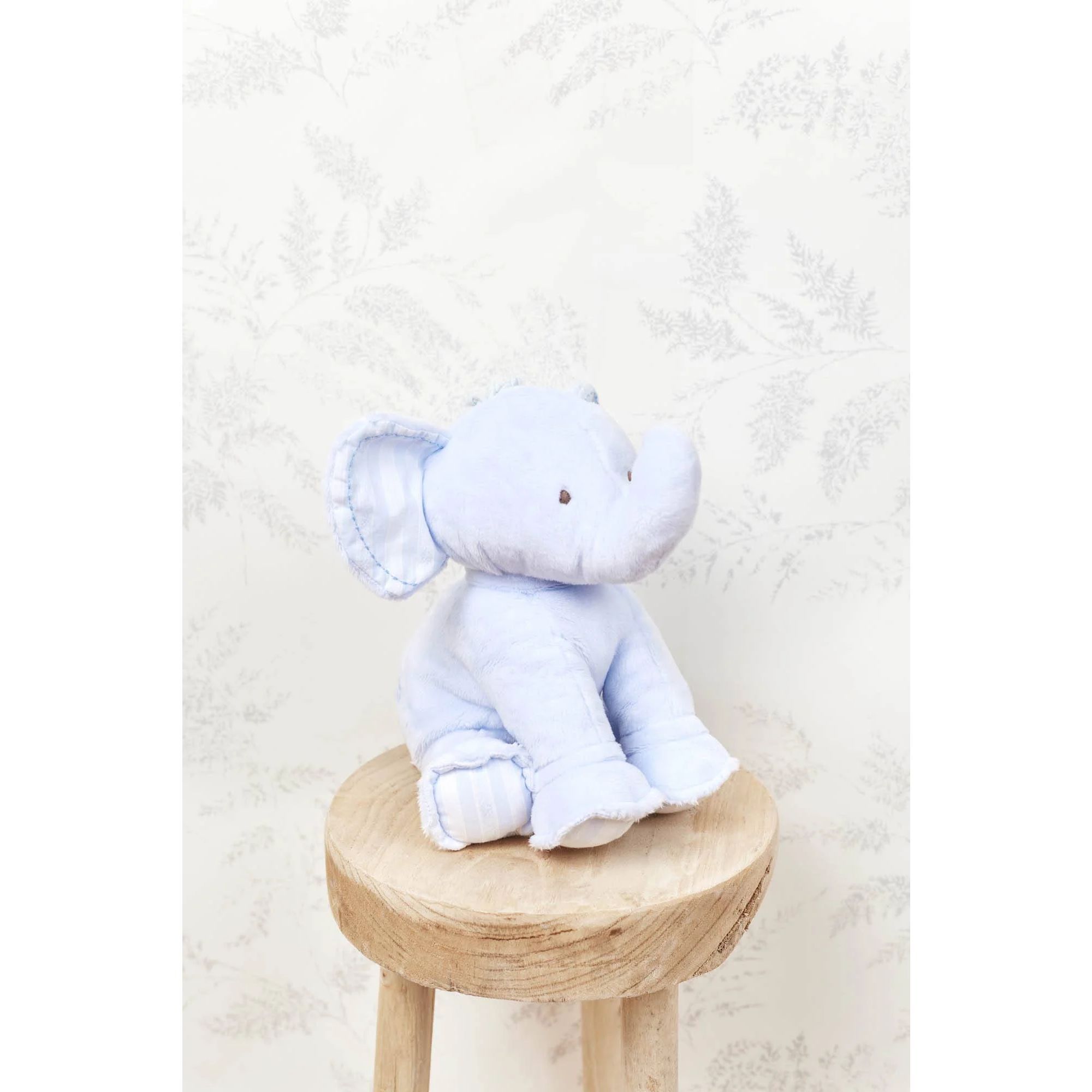 La peluche Ferdinand mesure 25 cm, conçue en fourrure synthétique bleu ciel. Ce compagnon est non seulement un super jeu pour bébé, mais aussi un objet rassurant grâce à ses caractéristiques uniques : trompe, poils et queue en suédine. Il est livré dans une jolie boîte, prête à être offerte.