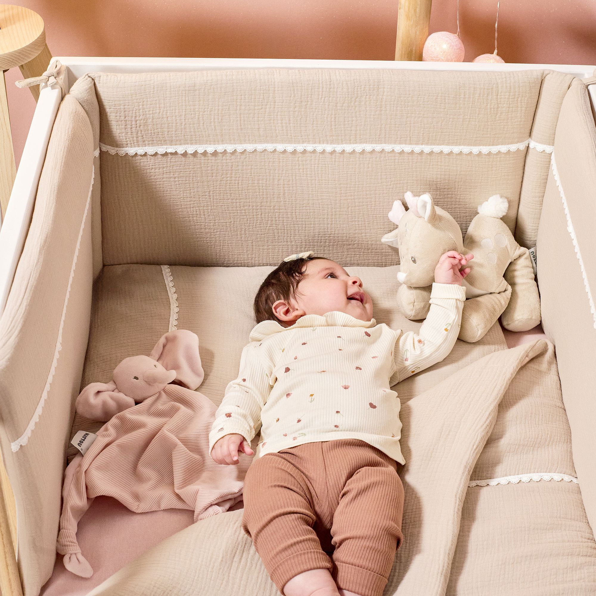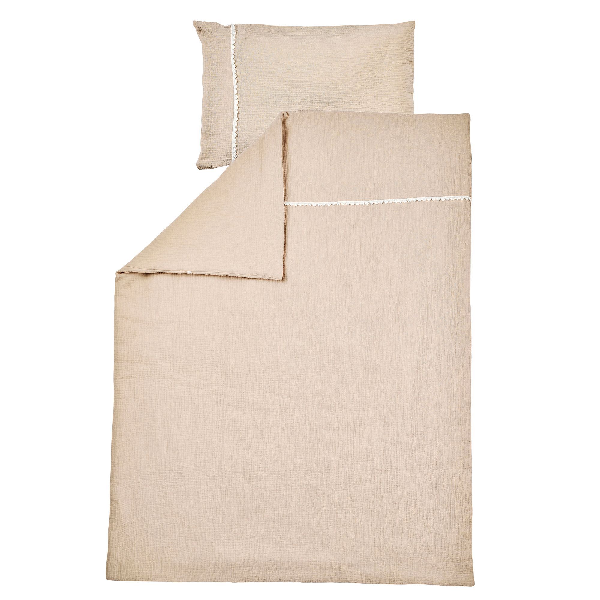 Cette parure de lit avec housse de couette et taie d'oreiller est extrêmement douce. Le tout s'intègre parfaitement à l'univers doux et cosy d'une chambre d'enfant pour accompagner bébé au moment de la sieste ou pour s'endormir profondément.