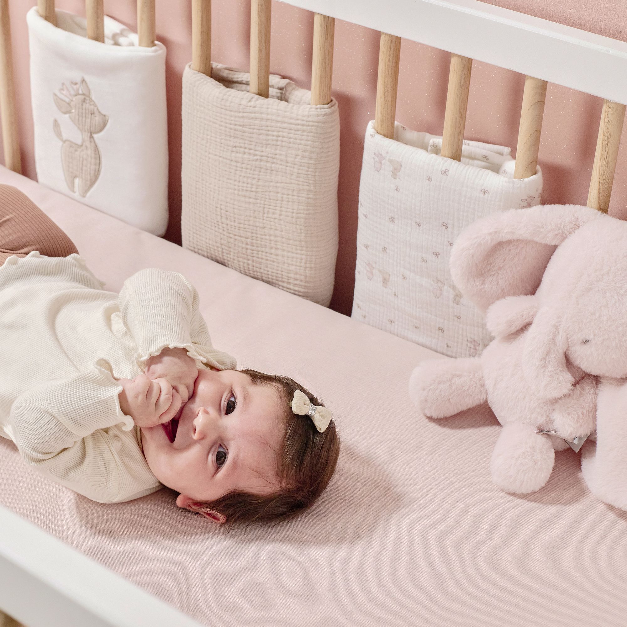 Optez pour les protèges barreaux tour de lit Fanfan de la marque Nattou pour le lit de bébé. Ces petites housses rembourrées se placent sur les barreaux du lit de bébé pour protéger ses bras et ses jambes lorsqu'il dort et bouge dans son lit. Facile à installer, ils assurent le confort de bébé pendant son sommeil.