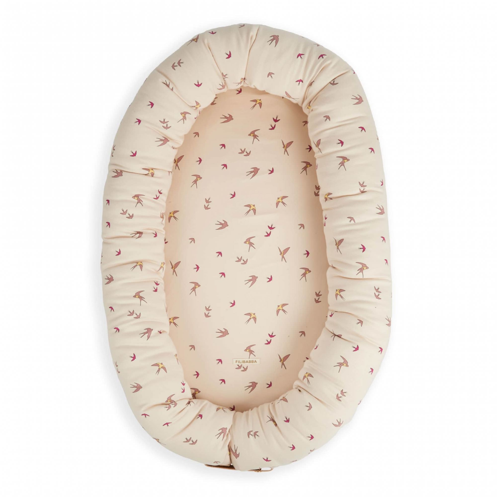 Découvrez le réducteur de lit Babynest en coton biologiqueDancing Swallow Rose de la marque Filibabba. Il a été spécialement conçu pour garantir des nuits confortables à votre enfant et ce dès sa naissance. Ce Babynest lui offrira un cocon de douceur dans lequel votre bébé se sentira en sécurité.