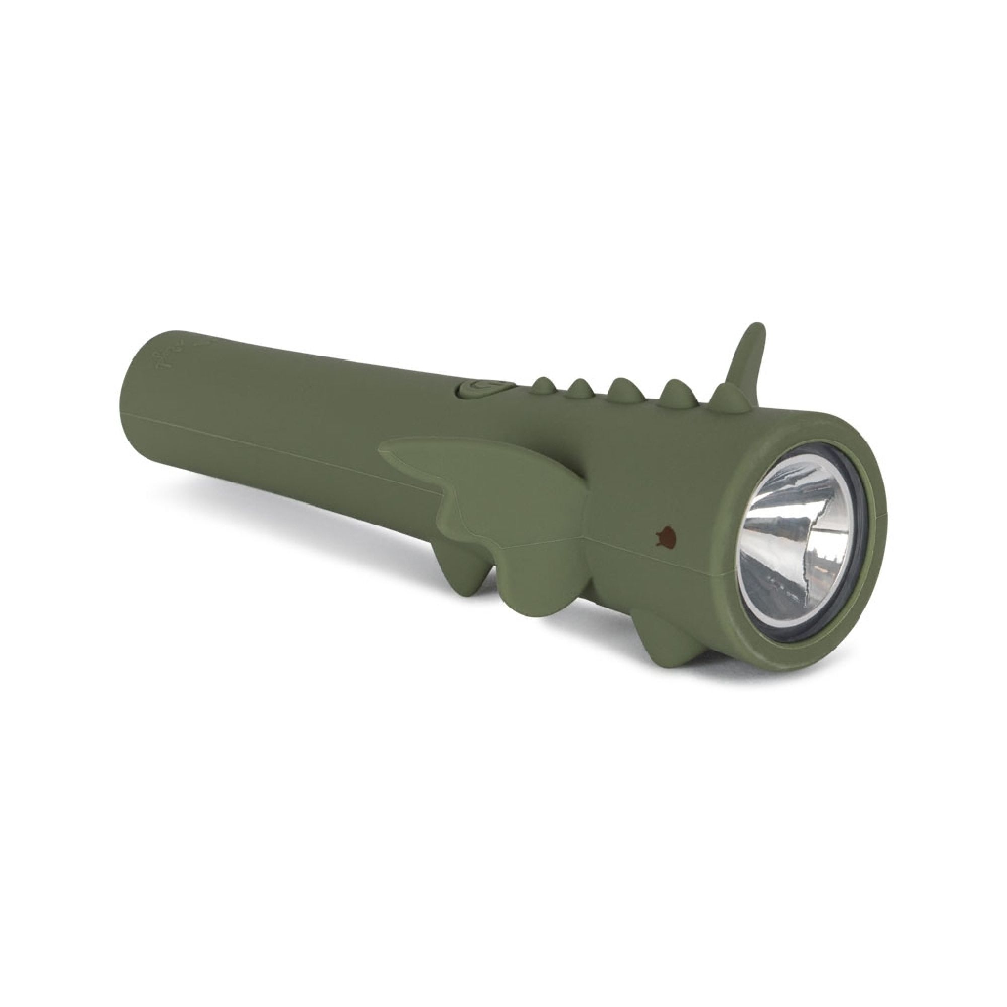 Craquez pour cette lampe torche enfant Dragon Olivine, de la marque Konges Slojd. Fabriquée à 100% en silicone, la lampe offre une source de lumière pratique et ludique. Livrée avec un chargeur USB inclus, elle est conçue pour les explorateurs en herbe de 4 ans et plus.