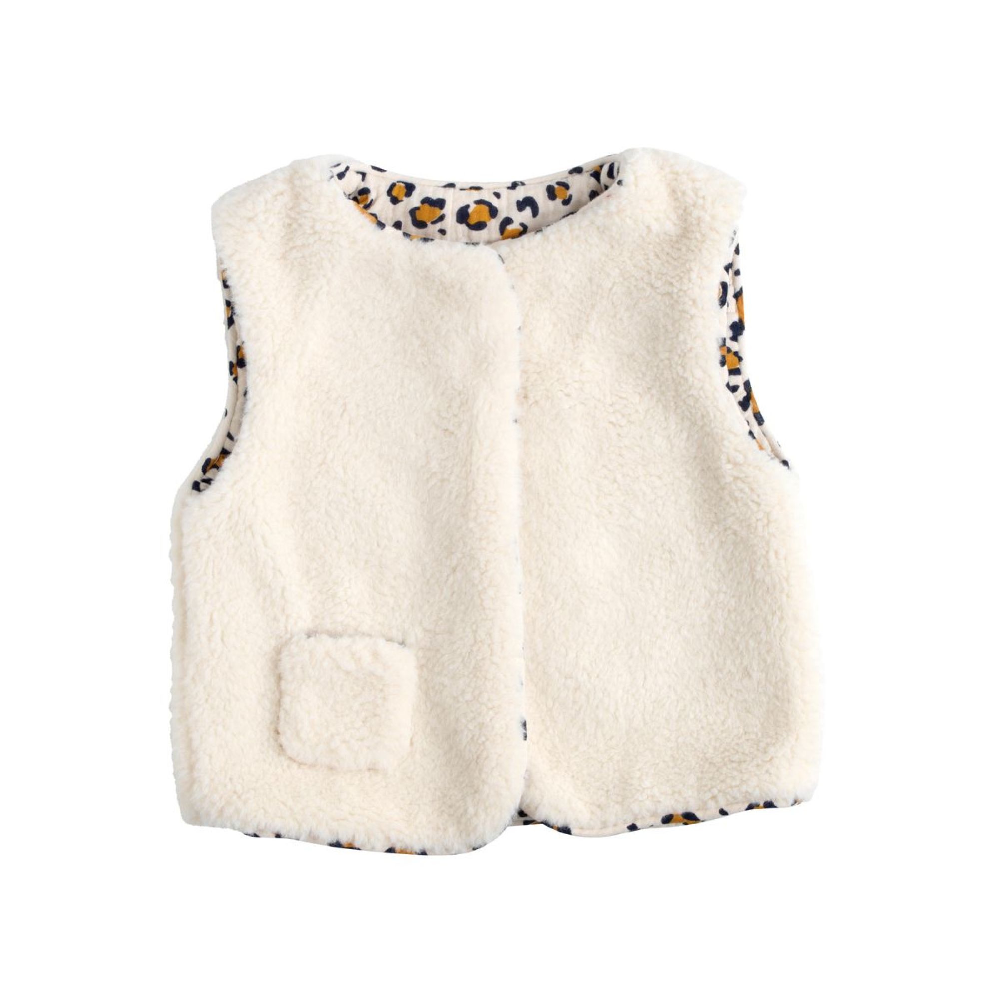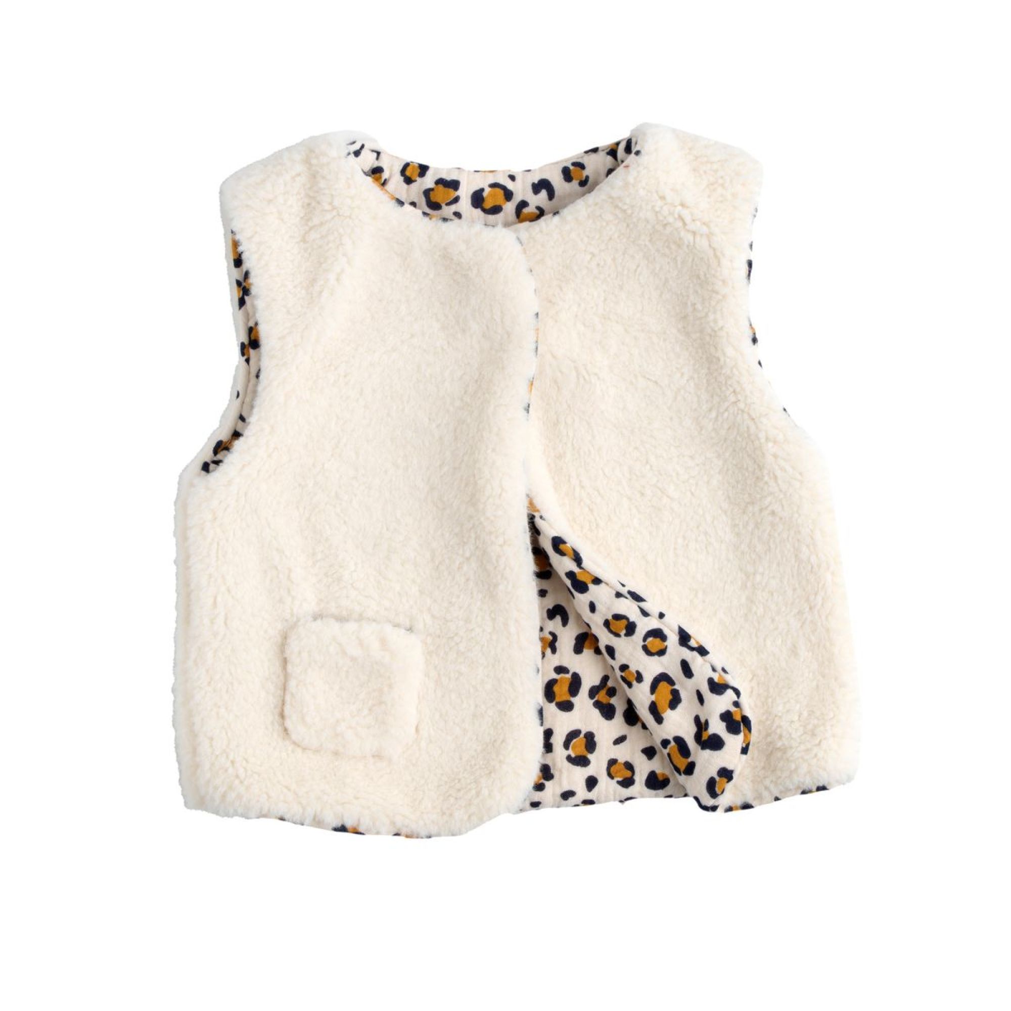 Découvrez le gilet sans manche de la marque Sauthon Baby Deco. Le gilet sans manches Léopard de Sauthon Baby Déco est une pièce de mode pour bébé, conçue pour apporter chaleur, confort et une touche de tendance à la garde-robe des tout-petits. Il fait partie d'une collection plus large sur le thème Léopard de la marque.