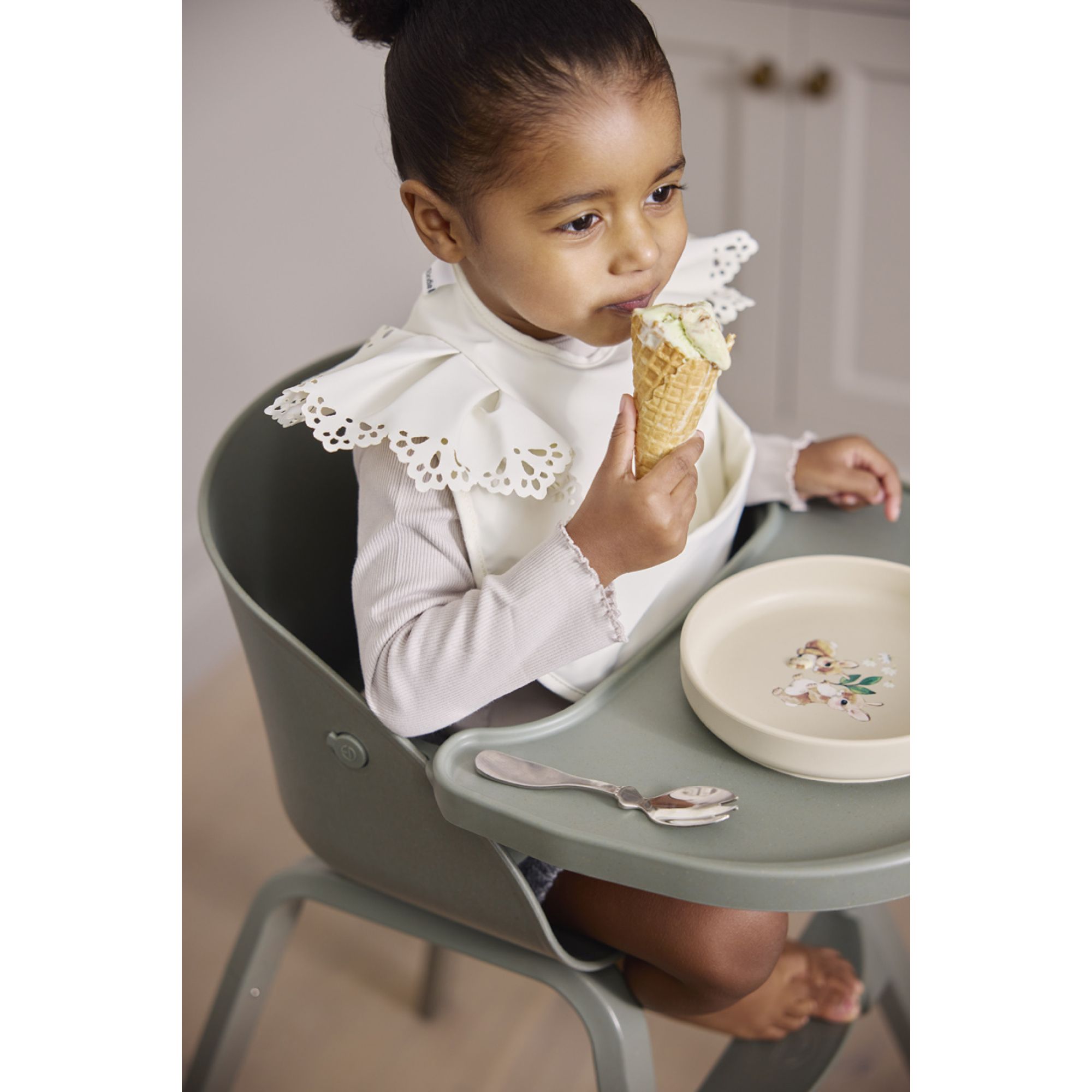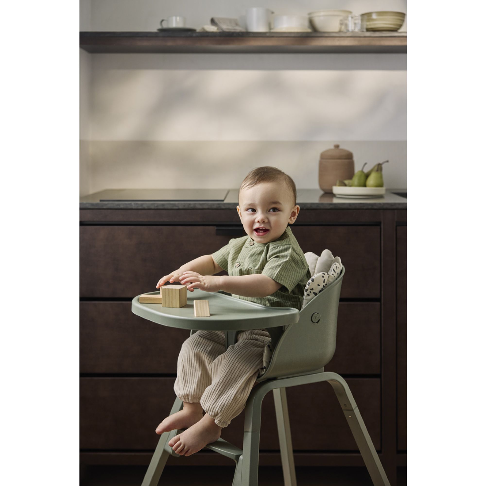 La chaise haute Grace a été conçue pour accompagner les moments de convivialité en famille. Grâce à sa base stable et à son repose-pieds ajustable, elle assure une position confortable au fil des années. Le plateau et la barre de sécurité étant séparés, l’enfant peut être installé directement à table pour partager les repas à la même hauteur que le reste de la famille. Légère et peu encombrante, elle se déplace facilement et s’adapte aussi bien aux grands qu’aux petits espaces.