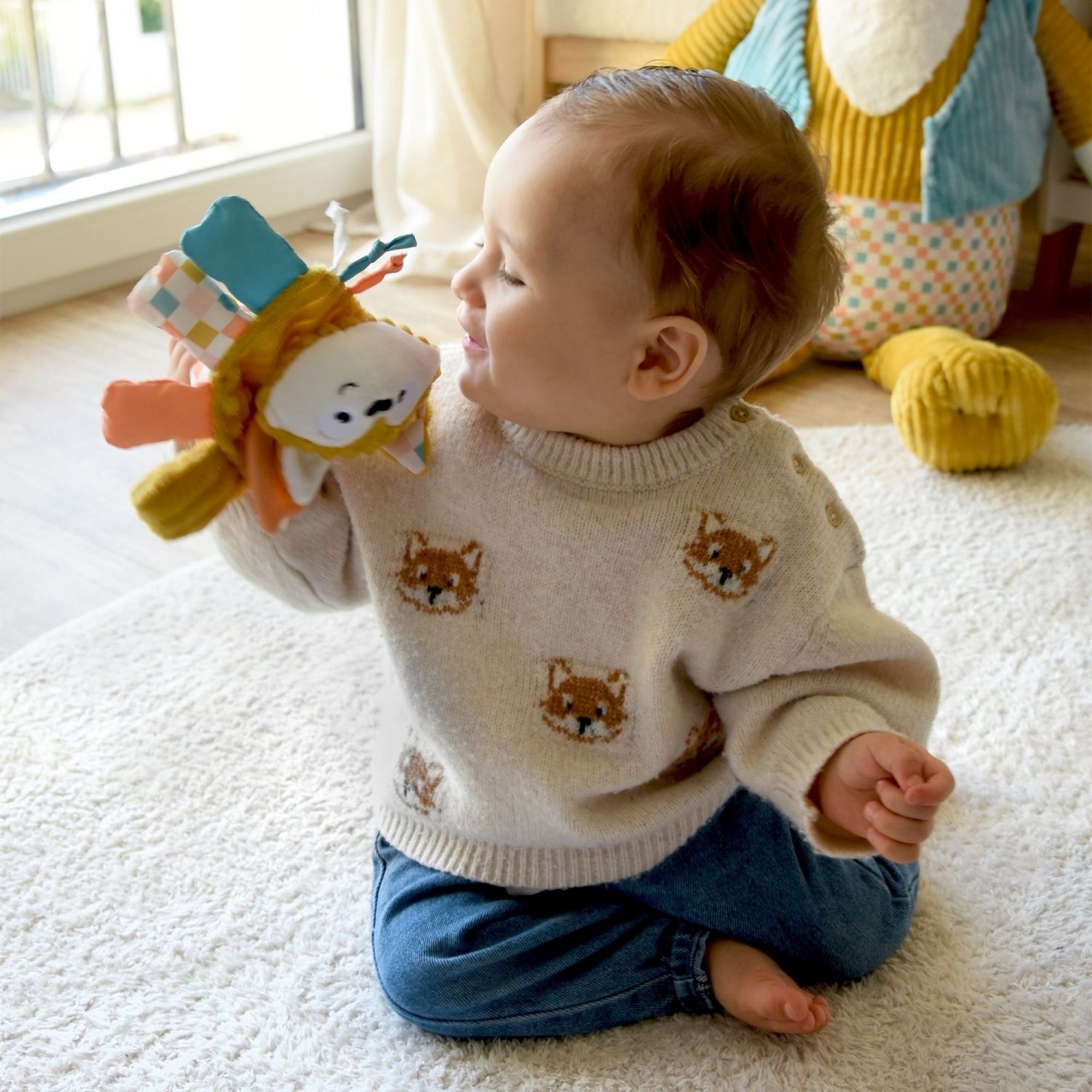 Ce hochet a été spécialement créé pour amuser votre bébé et favoriser l'éveil de ses sens tels que la vue, le toucher et l'ouïe. Votre enfant observera avec attention tous les détails qui composent ce jouet : matières, couleurs et motifs différents.