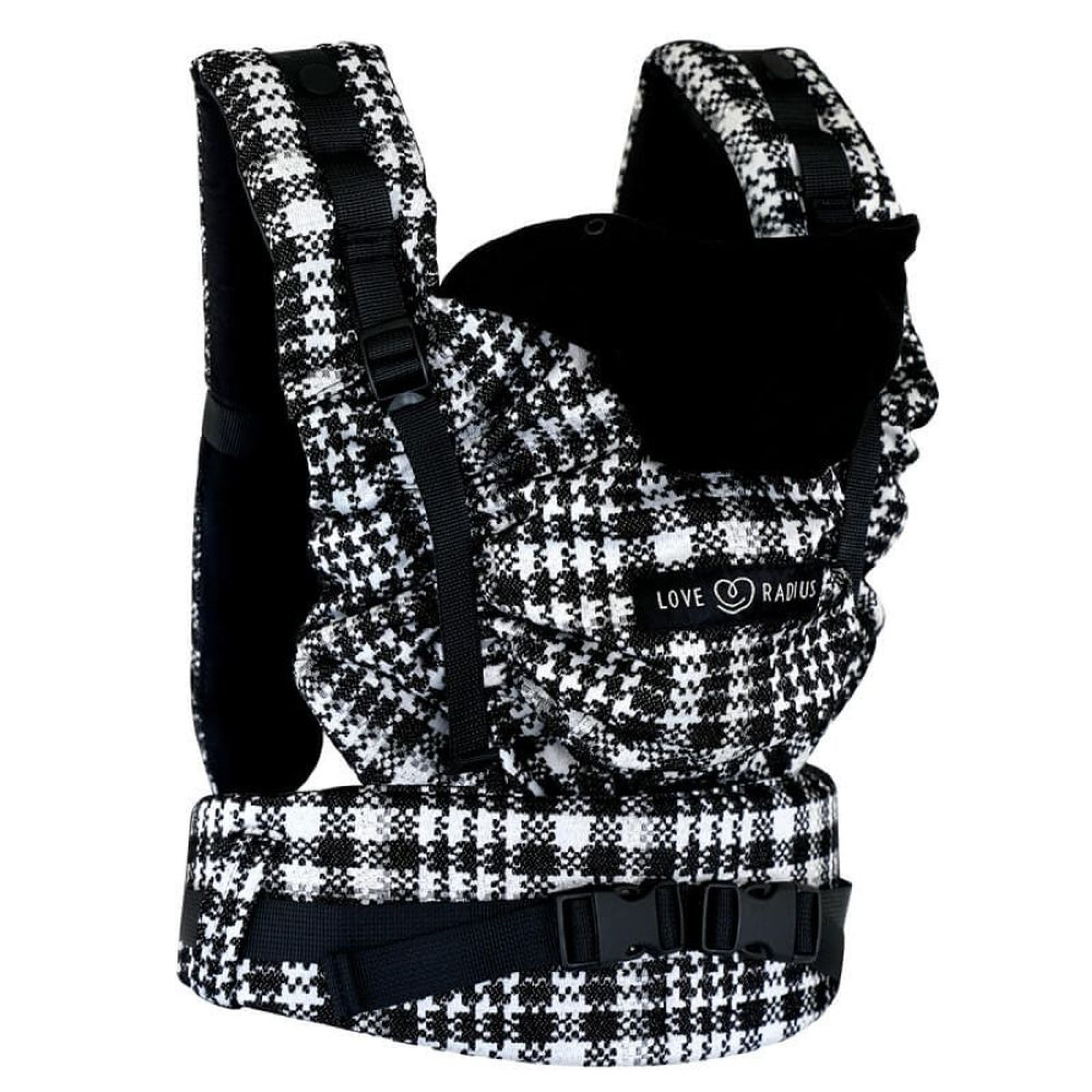 Adoptez le porte bébé HoodieCarrier 2 Prince de Galles de la marque Love Radius. Vous pourrez porter votre enfant dans 5 positions différentes. Ce porte bébé est ergonomique pour l'adulte et physiologique pour le bébé. Le HoodieCarrier 2 offre une une solution tout-en-un sans accessoire par rapport au HoodieCarrier 1. De plus, vous pourrez aussi attacher les bretelles sous les fesses.