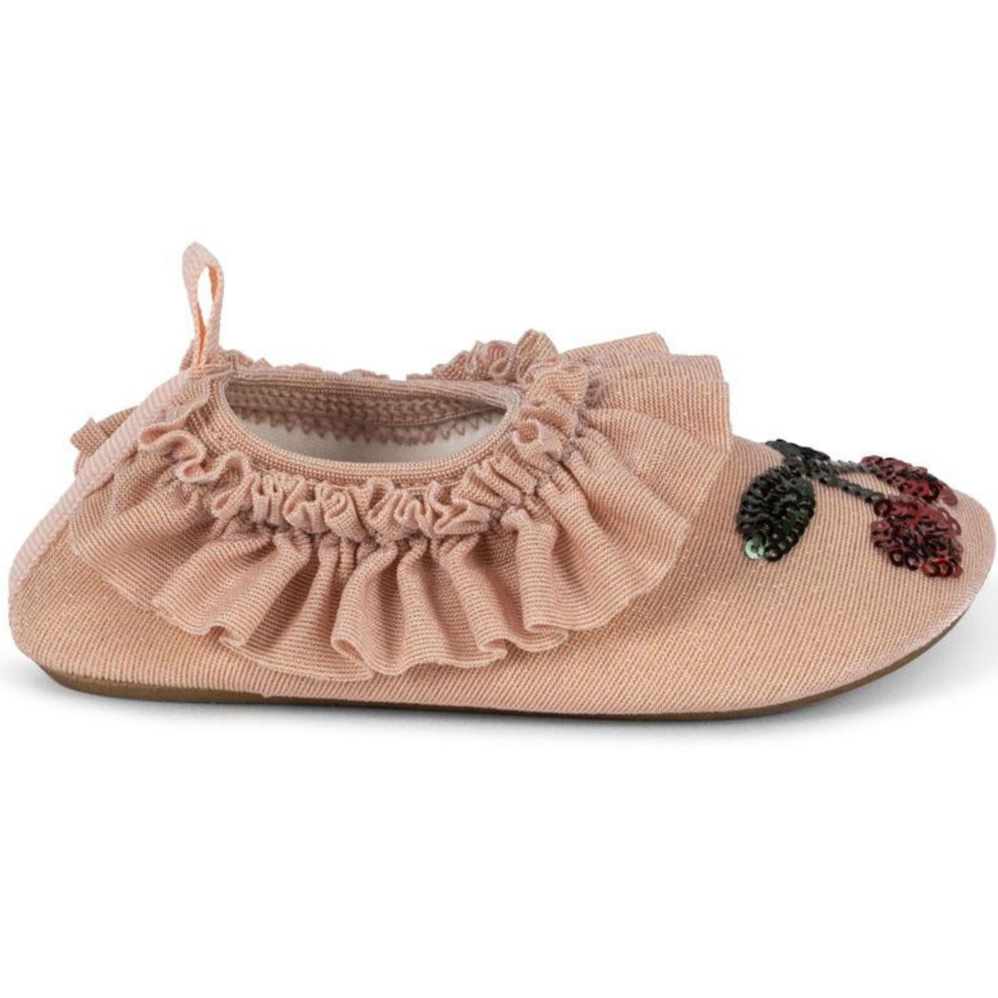 Adoptez les chaussures de bain enfant à volants Merle - Cherry 32-33 cm de la marque Konges Slojd. Ces jolies chaussures d'eau seront idéales pour protéger les petits pieds de bébé du soleil et des cailloux dans l'eau ou sur la plage.
