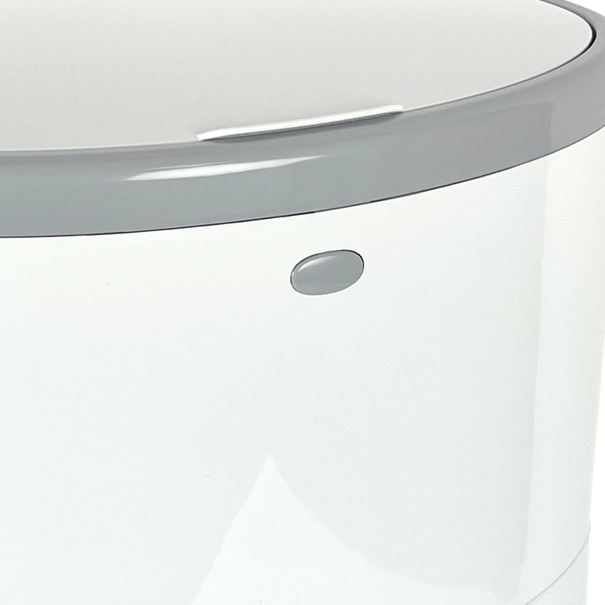 La porte de la poubelle à couches est équipé d'un coupe-sac, très pratique pour détacher et jeter le sac. Le système fonctionne avec une pédale à pied, ce qui permet de simplement laisser tomber la couche dans la poubelle. La poubelle Korbell a été fabriqué en résine ABS, un matériau qui n'absorbe pas les odeurs. Une fois l'enfant propre, elle se transforme en une élégante poubelle de salle de bain ou de chambre.