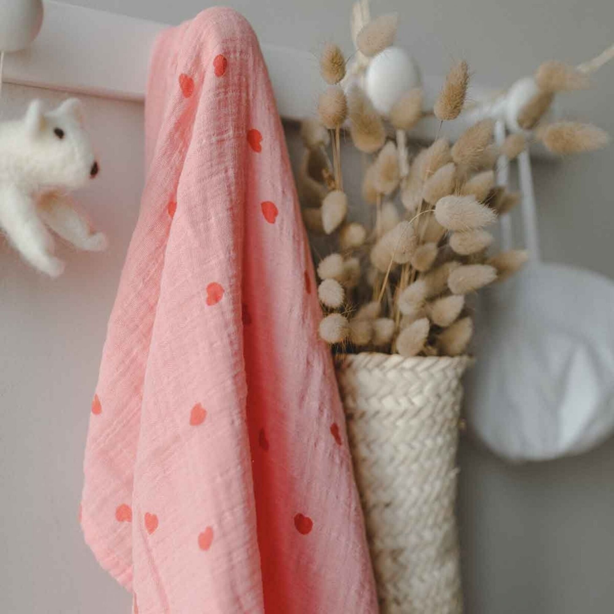 Choisissez ce lange bébé 70x70 cm Coeur Rose et Rouge de la collection Bianca de la marque Rose in April. Multi-usage, il deviendra vite indispensable à votre quotidien ! Ce lange Rose in April pourra vous servir pour emmailloter votre enfant, comme doudou, bavoir d'épaule ou encore housse de matelas à langer.
