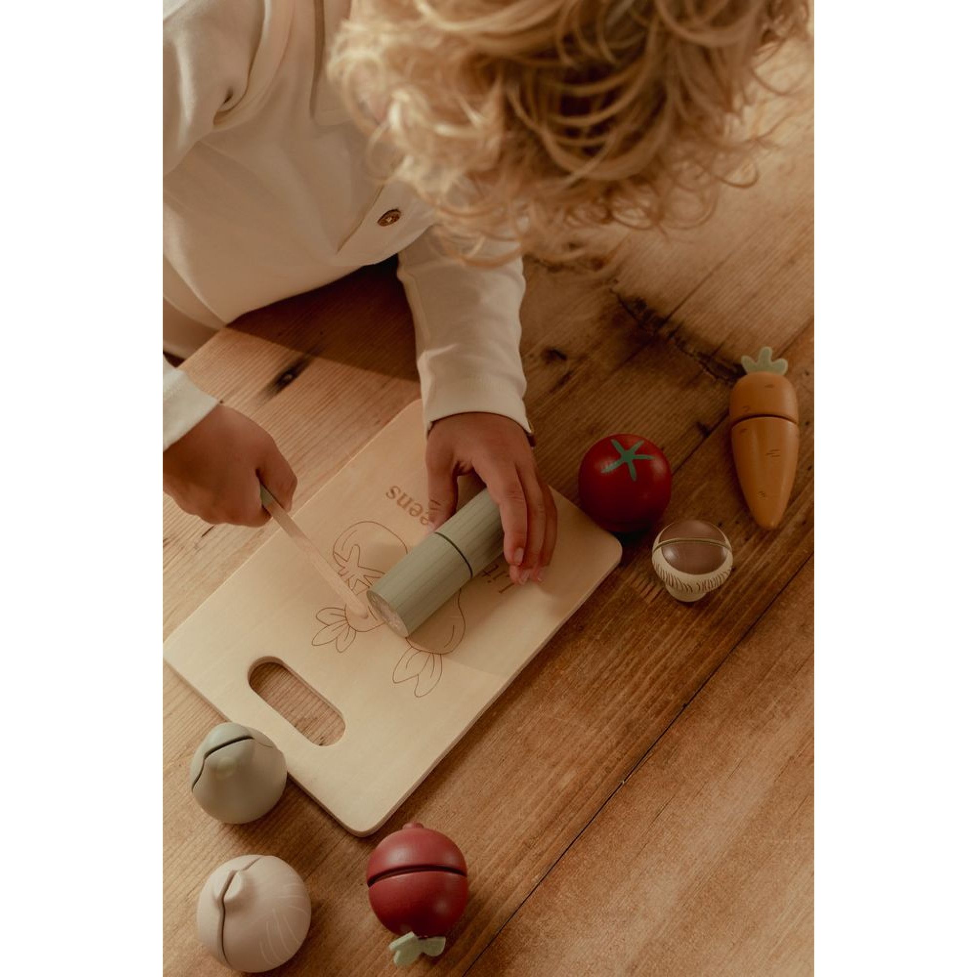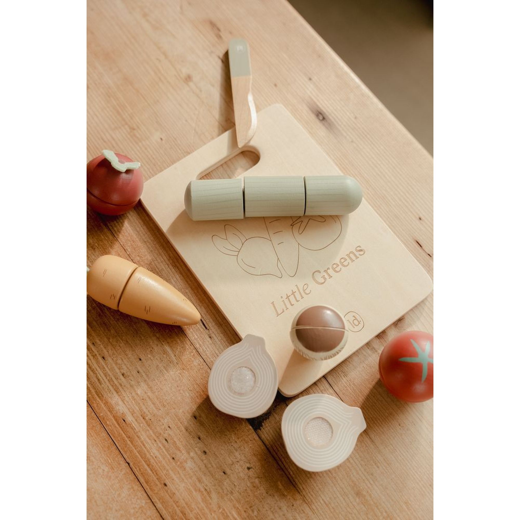 Découvrez le légumes à découper en bois FSC de la marque Little Dutch. C'est un jouet en bois classique et intemporel, conçu pour stimuler le jeu de rôle et la motricité des enfants. Il incarne parfaitement l'esthétique douce et colorée de la marque.