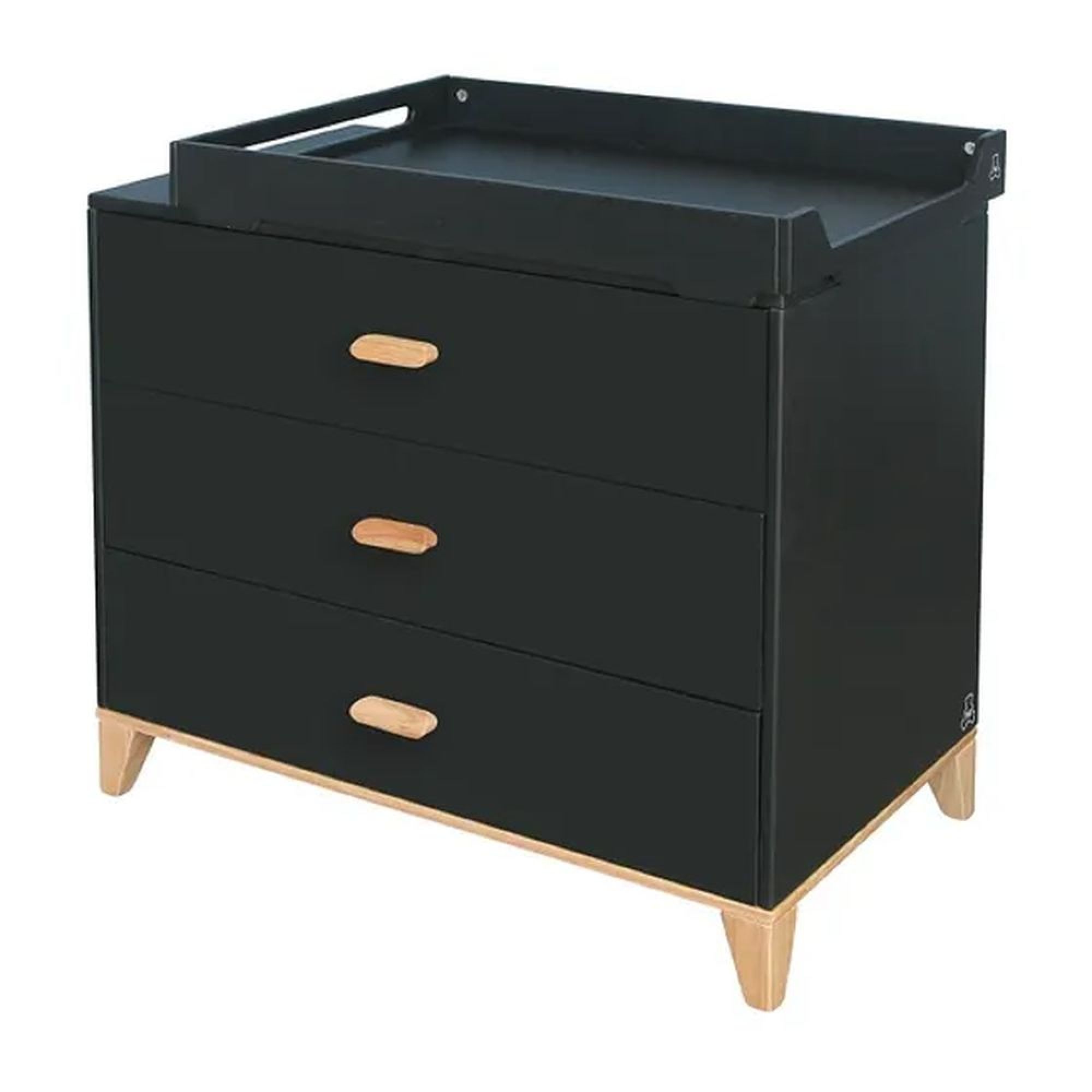 Choisissez le plan à langer Léo de couleur onyx de la marque Théo pour compléter la commode de la même collection pour changer votre bébé en toute sécurité. Avec sa grande largeur et ses bords hauts, plus de risques de chutes et de la place pour toutes les petites affaires de votre enfant.