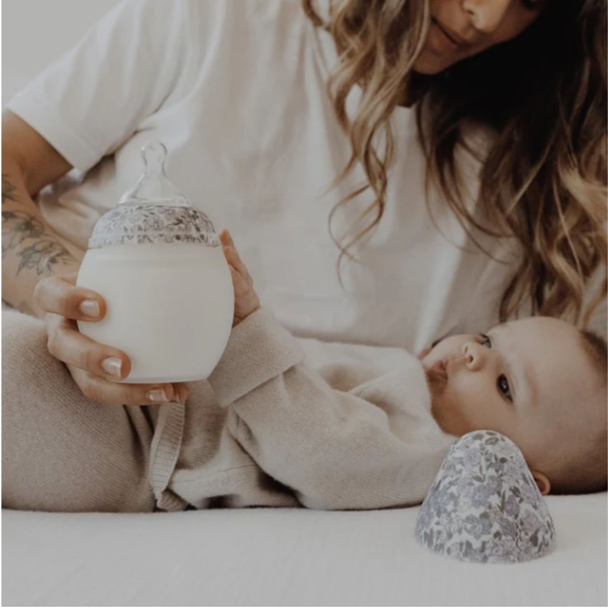 Découvrez ce biberon anti-colique 150 ml issu d’une collaboration exclusive entre Élhée et Liberty Joanna Louise, alliance parfaite du savoir-faire français et de l’élégance intemporelle des motifs floraux Liberty Joanna Louise. Conçu pour les bébés dès la naissance, il est doté d’une tétine physiologique à débit lent (S) qui favorise une tétée naturelle et confortable. Fabriqué en silicone médical 100 % sain, il assure une utilisation en toute sécurité, sans substances nocives ni migration de microparticules, pour une expérience d’alimentation douce, rassurante et respectueuse du rythme de votre bébé.