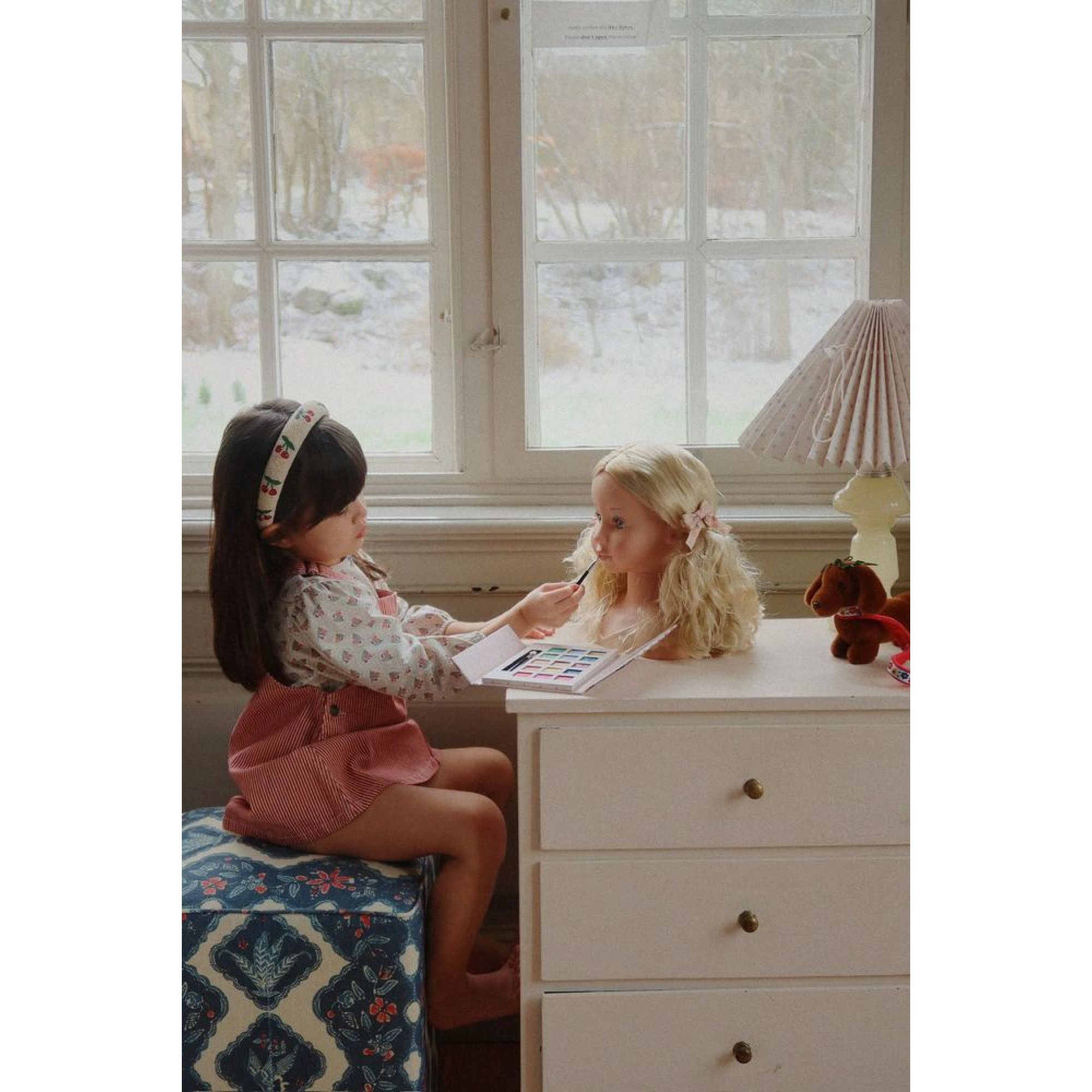 Optez pour ce superbe salon de maquillage pour poupée de la marque Konges Slojd .Ce joli buste de poupée est conçu pour des heures de jeu et de plaisir, permettant à votre enfant de s’essayer à différentes coiffures et maquillages.