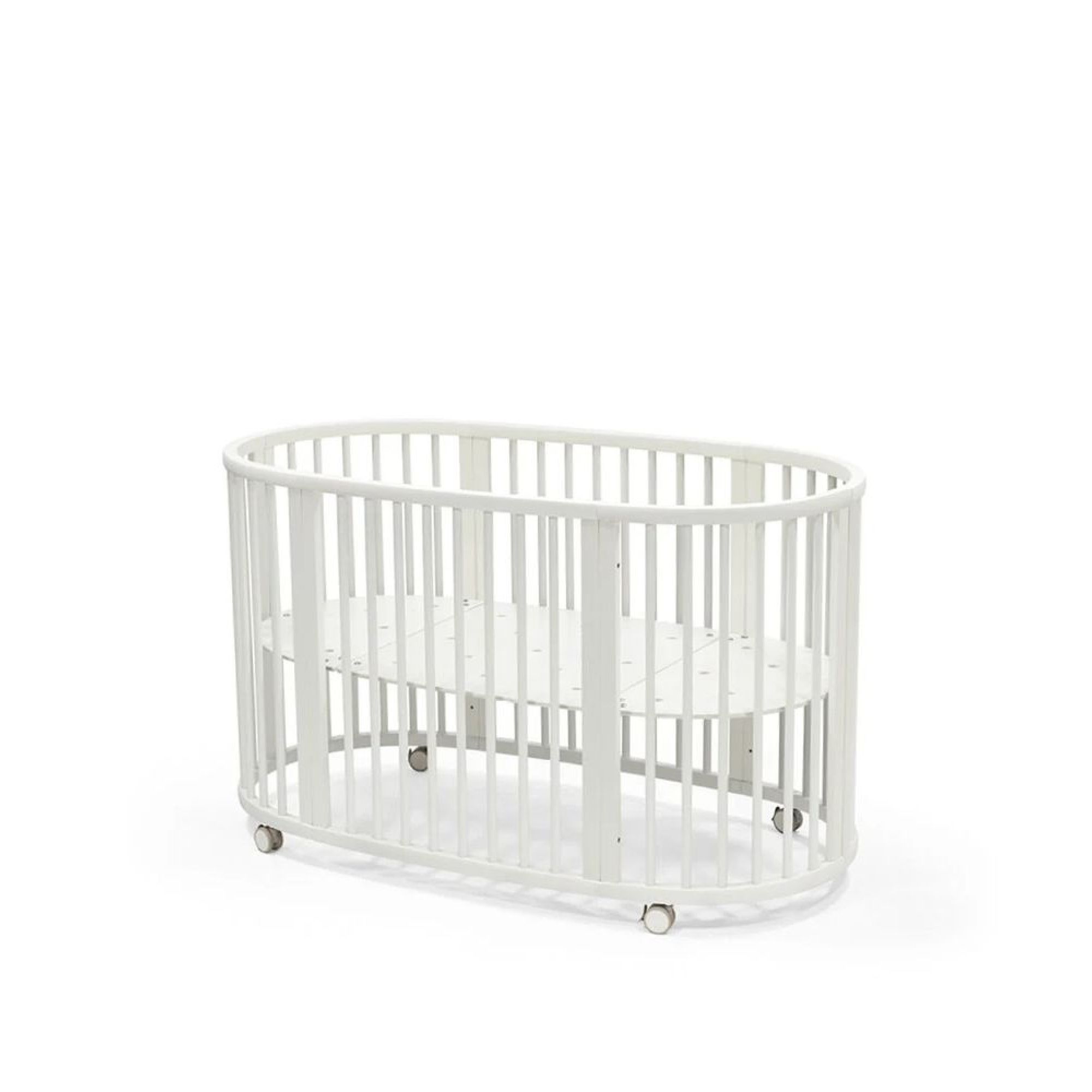 Le lit Sleepi V3 est conçu pour grandir avec votre enfant, il s'adaptera à sa croissance, de la naissance jusqu'à 5 ans environ. Avec sa forme ovale et ses roues pivotantes verrouillables, ce lit Stokke passera facilement dans les ouvertures de porte. Vous pourrez ainsi déplacer votre bébé de pièces en pièces pendant sa sieste, sans perturber son sommeil. La hauteur du sommier de ce lit Stokke est réglable en 4 positions, ce qui vous permettra d'installer et de reprendre votre enfant facilement.