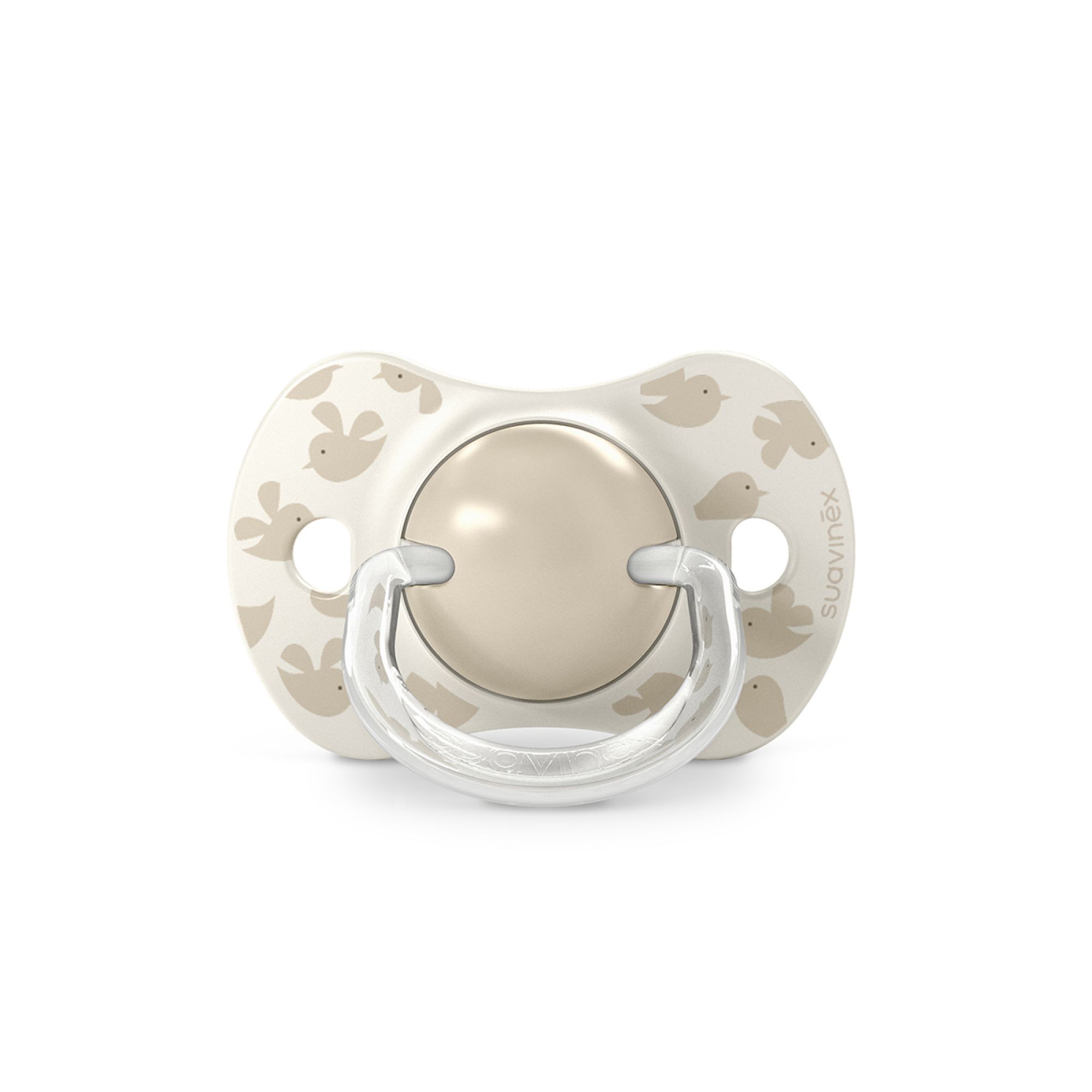 Apportez à bébé confort et sérénité avec le lot de 2 sucettes symétriques SX Pro Birdies de la marque Suavinex, adaptées de 6 à 18 mois. Développées avec l’expertise d’odontopédiatres, elles respectent le développement bucco-dentaire grâce à leur tétine plate et symétrique en silicone fin ultra-doux. Sa finition sablée imite la texture du mamelon maternel pour une sensation naturelle et rassurante. Sans BPA et décorées de motifs poétiques issus de la collection Birdies, ces sucettes allient douceur, hygiène et élégance pour accompagner bébé au quotidien.
