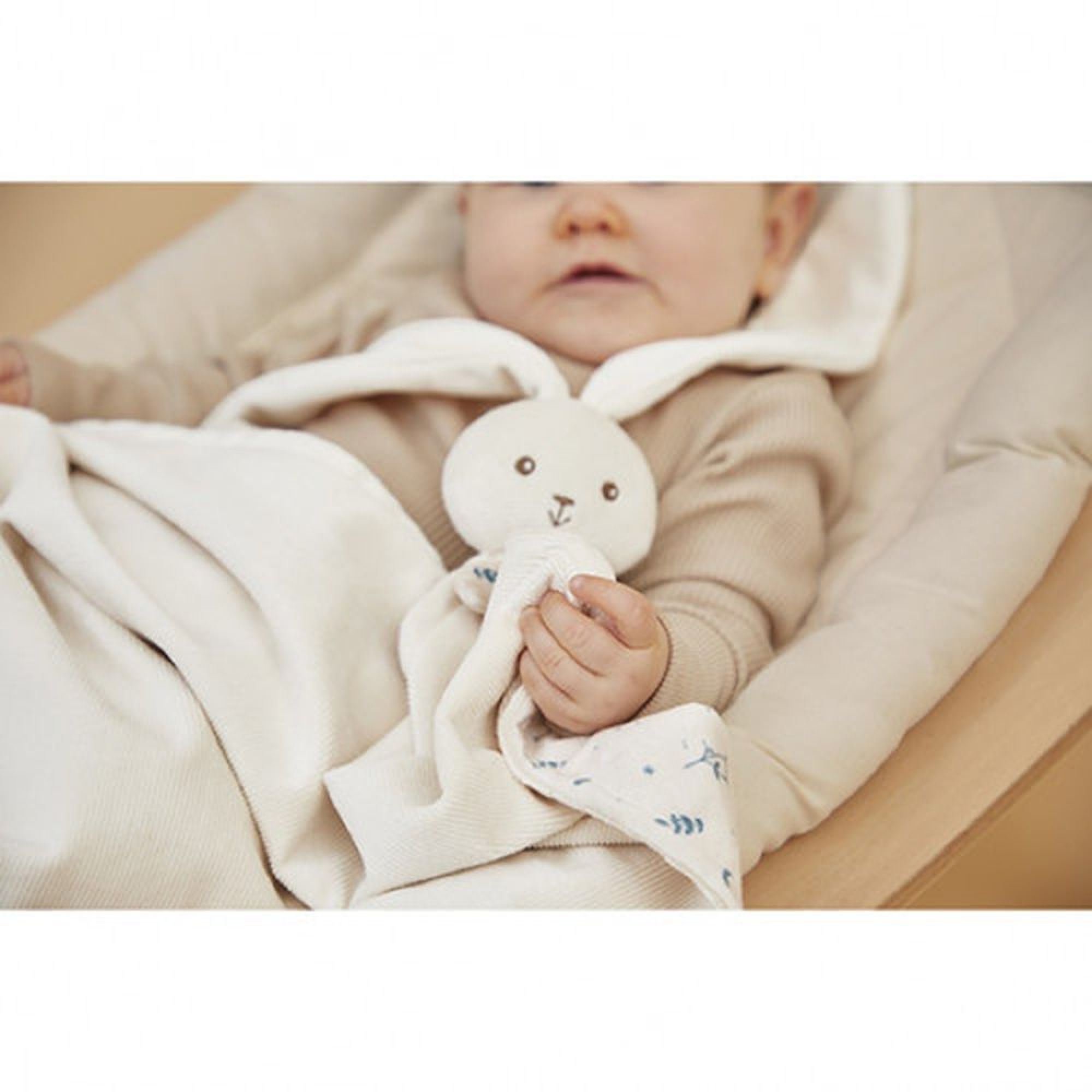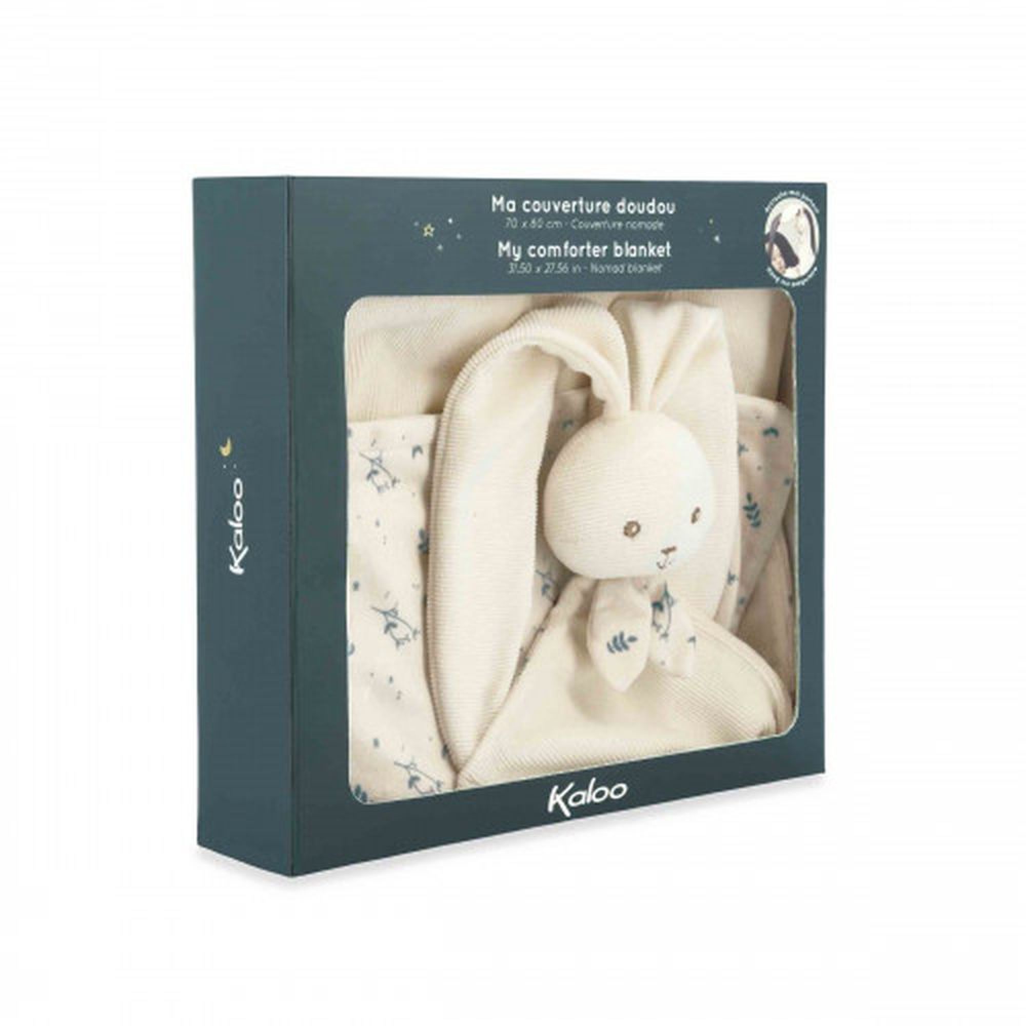 Découvrez la couverture doudou lapin 80 x 70 cm Crème de la marque Kaloo. Ce produit très original propose à la fois une fonction de doudou lapin traditionnel et une fonction couverture.