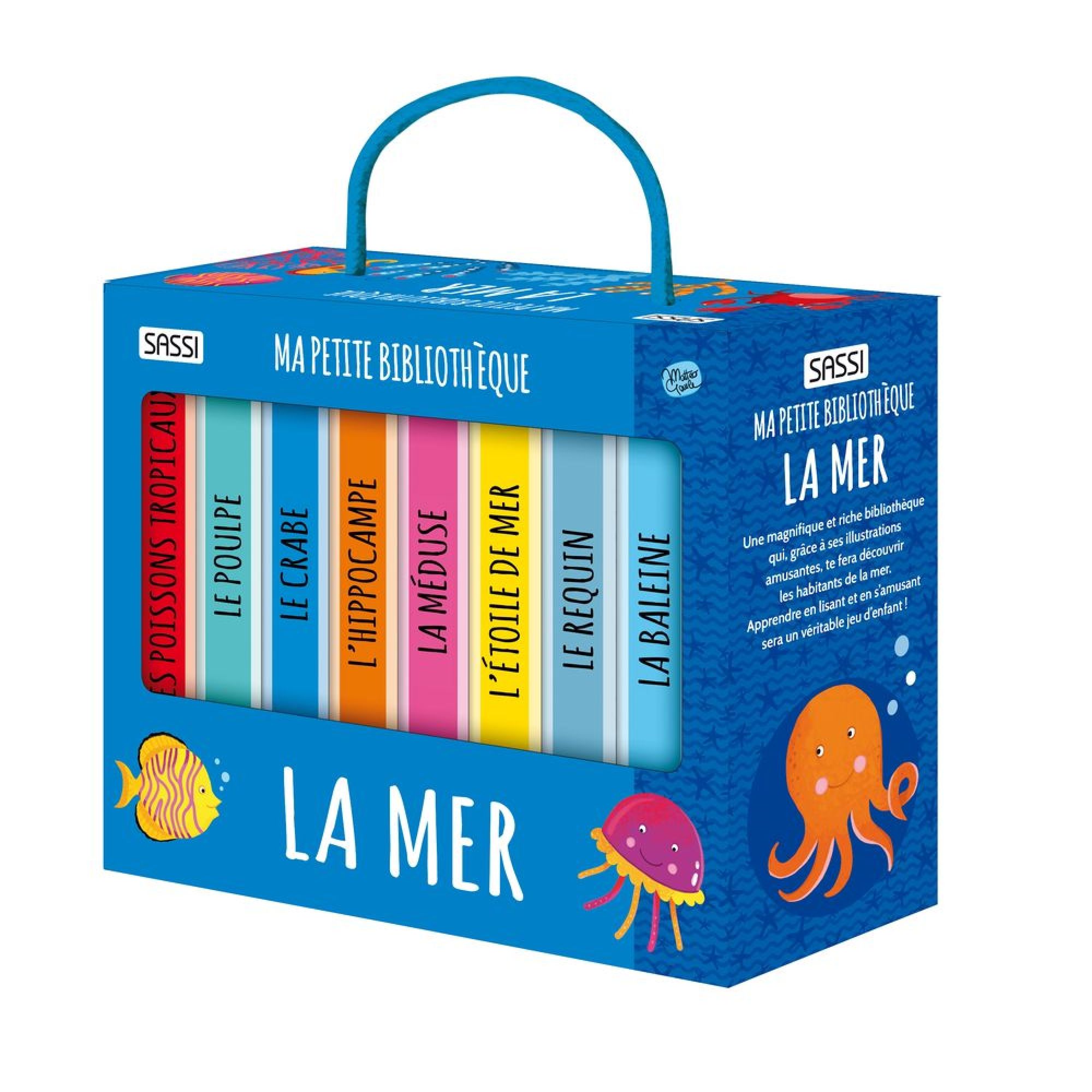 Découvrez la bibliothèque sur le thème de "La mer" de la marque Sassi. Cette jolie bibliothèque renferme huit livrets consacrés à la découverte des animaux marins. Baleine, méduses, crabes, votre enfant pourra impressionner ses copains à l'école en leur faisant part de ses nouvelles connaissances !