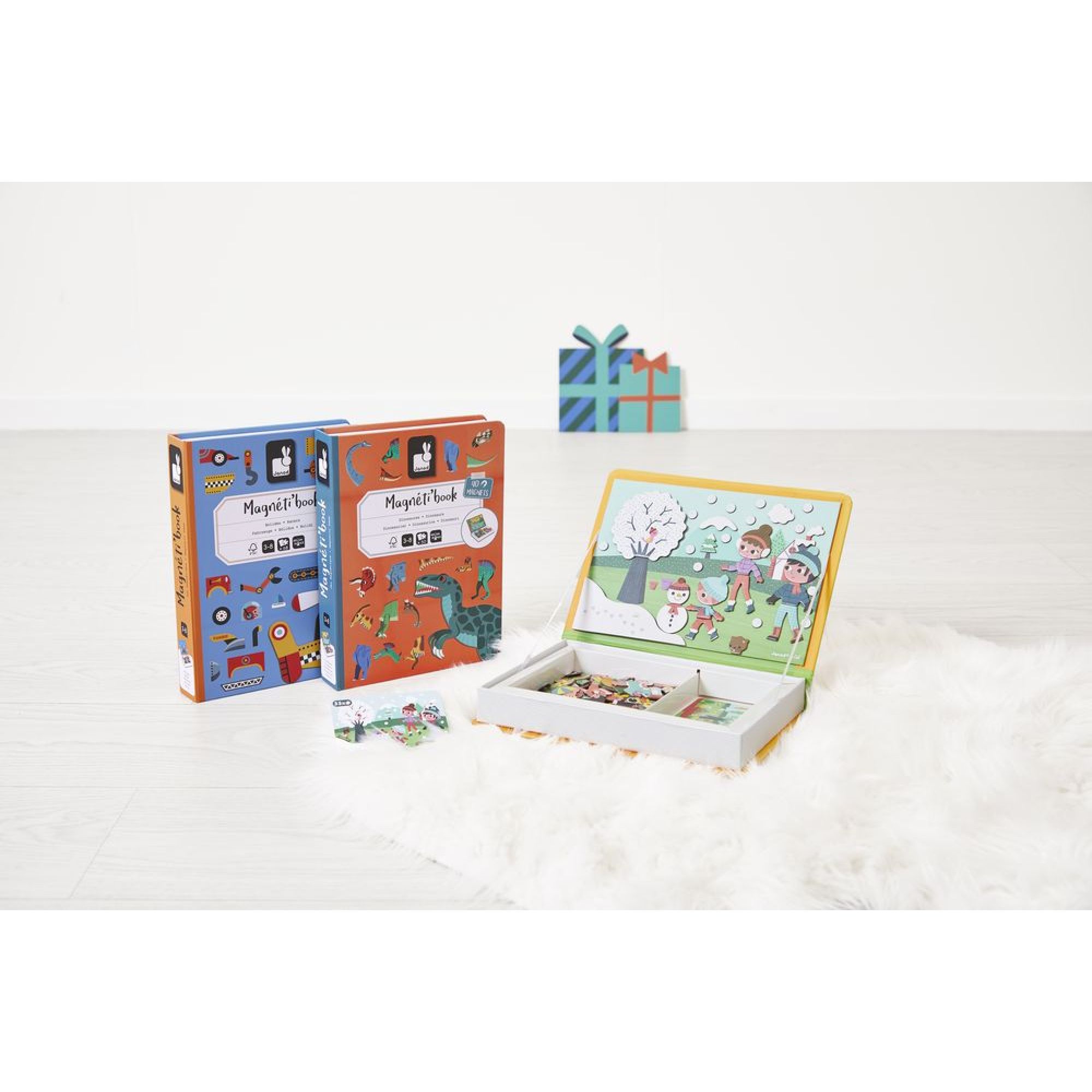 Choisissez le jeu Magnéti'book Dinosaures de la marque Janod. Facile à transporteur et à ranger, il sera idéal pour les trajets en voiture. Le Magnéti'book est une boite originale en forme de livre avec un couvercle magnétique. Votre enfant va pouvoir laisser libre cours à son imagination avec ce jeu éducatif.