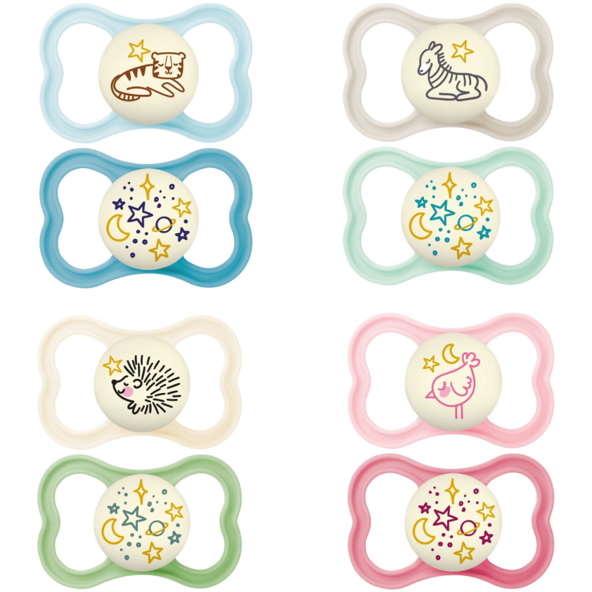 Optez pour ce lot de 2 sucettes nuit Mam de la collection Supreme de la marque Mam. Elles sont conçues pour les bébés dès 18 mois. Elles sont fabriquées avec l'aide de pédiatres et dentistes pour favoriser le bon développement bucco-dentaire de votre enfant. Ces sucettes Mam sont dotées d'une téterelle en silicone 4 fois plus souple et 60% plus mince que les sucettes ordinaires. Spécialement conçues pour la nuit, ces sucettes Mam possèdent un bouton phosphorescent qui brille pour les retrouver plus facilement dans le noir.