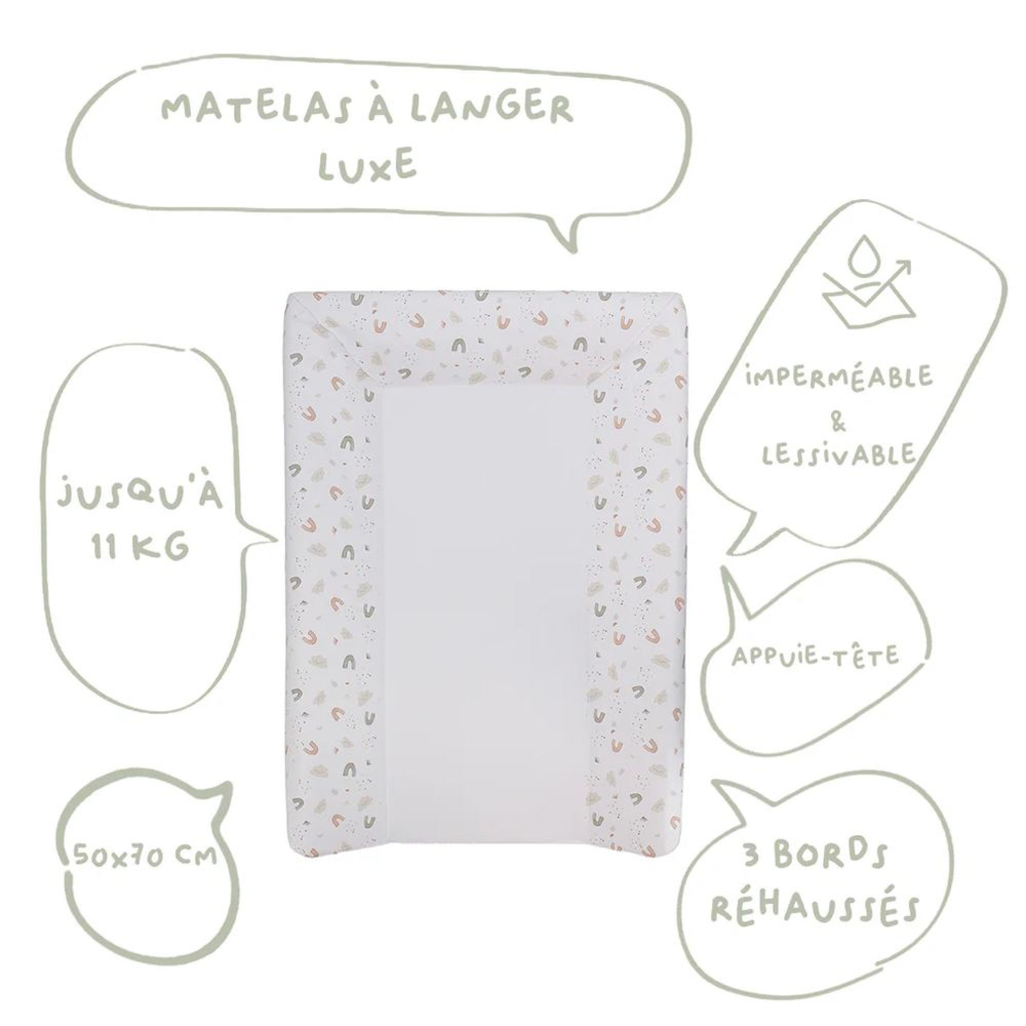 Ce matelas à langer conviendra à de nombreux modèles de tables à langer. De plus, l'entretien est facile et rapide, un simple coup d'éponge et le tour est joué ! Le matelas est imperméable avec des bords rehaussés pour vous permettre d’effectuer tous les soins de votre bébé en toute sécurité.