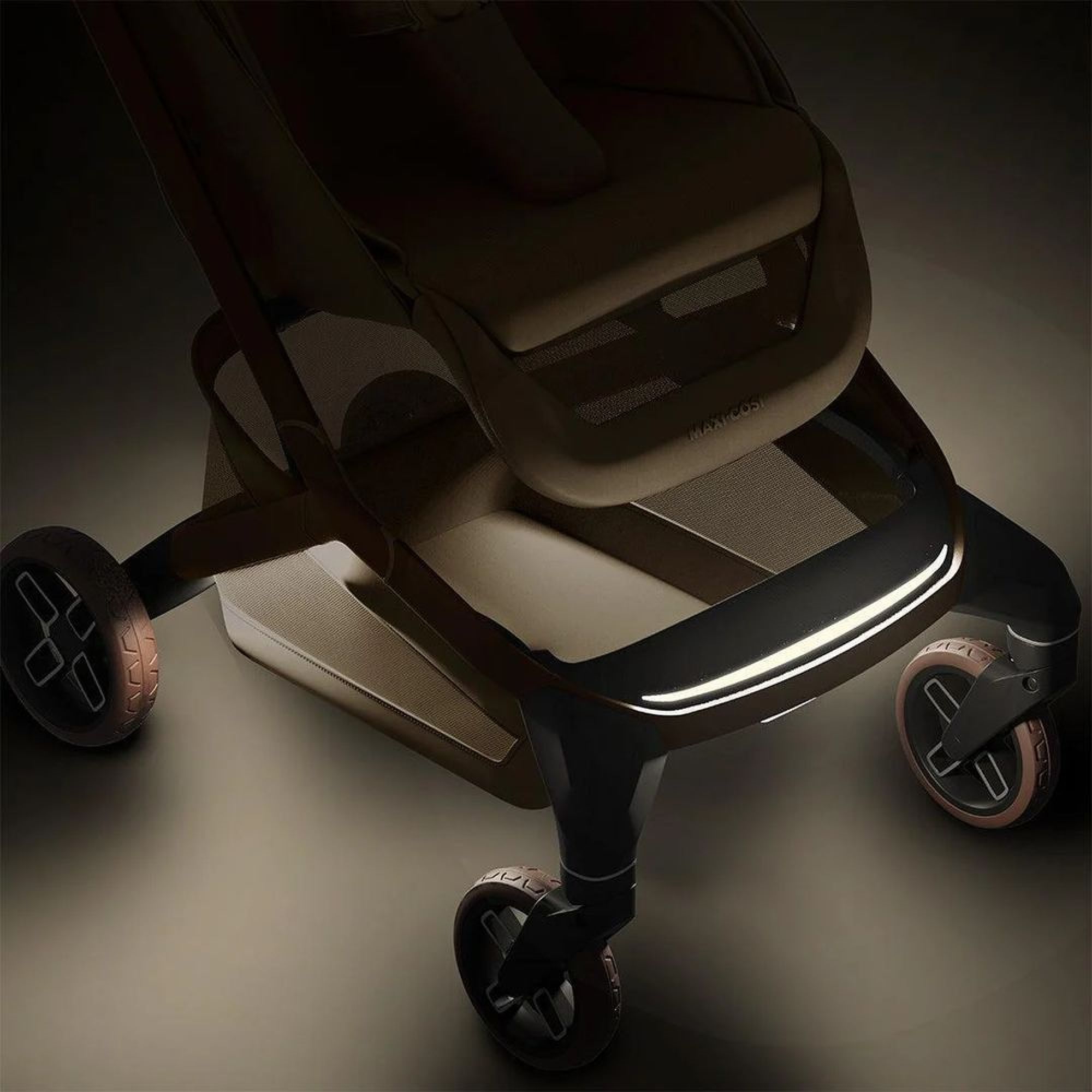 Le châssis innovant de Fame présente des détails de design et des finitions premium. Le châssis dispose d'un système de lumières LED intégré conçu pour éclairer les rues sombres et les chemins peu éclairés, vous permettant ainsi de rester visible et en toute sécurité, vous et votre bébé, à tout moment. La batterie externe vous permet de recharger votre téléphone ou tout autre objet via un port  USB-C. Vous resterez ainsi connecté !
