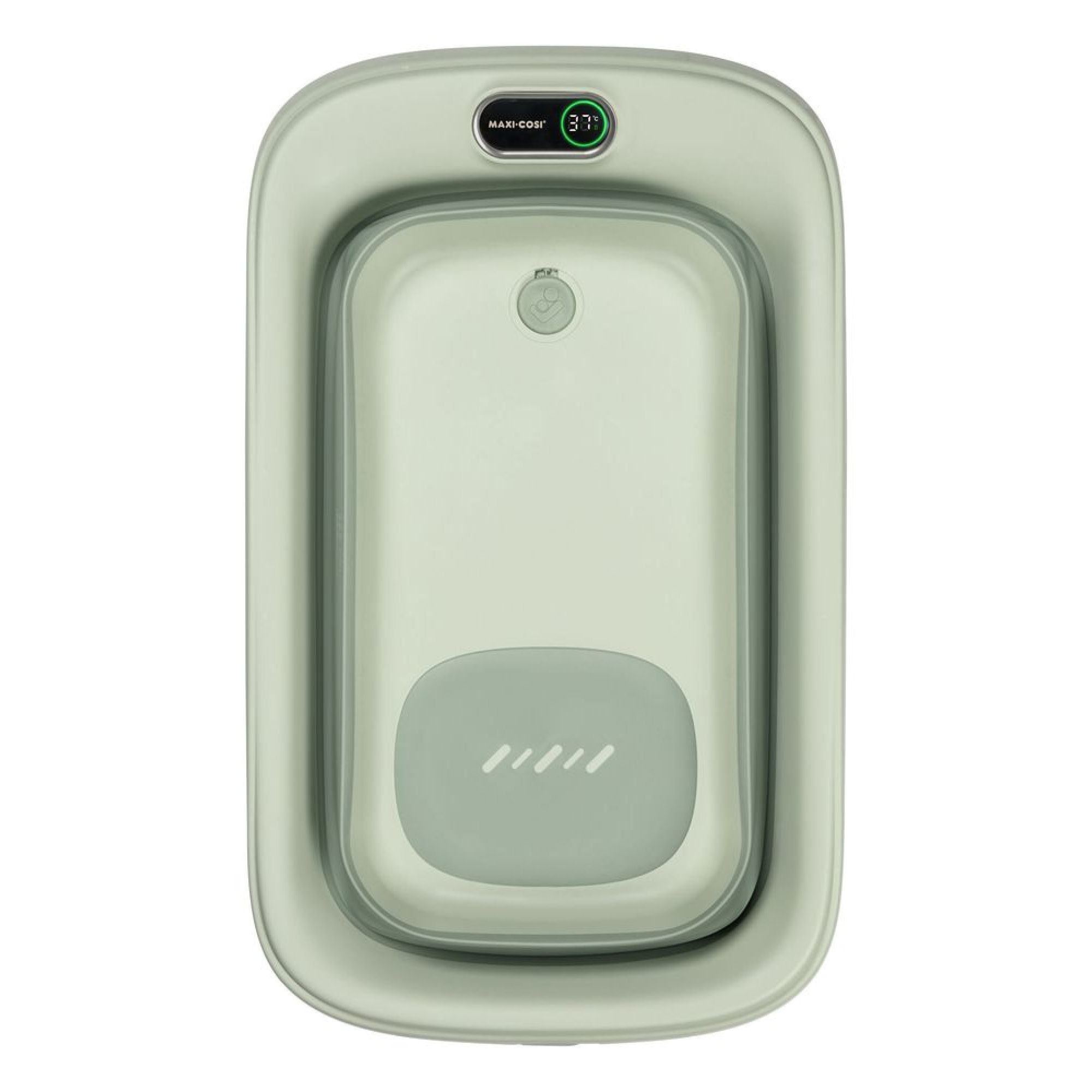 Découvrez la baignoire Indigo et son thermomètre intégré de la marque Maxi Cosi. La baignoire Indigo est une solution de bain moderne et pratique, conçue pour évoluer avec l'enfant, de la naissance jusqu'à environ 4 ans. Elle se distingue par son design ingénieux, idéal pour les petits espaces, et ses fonctionnalités axées sur la sécurité. Pour garantir la sécurité de bébé, la baignoire est équipée du Thermomètre HighSense. Il s'agit d'un capteur intégré qui affiche la température de l'eau. Il est associé à un indicateur de couleur qui devient vert lorsque la température est idéale (37°C-38°C).
