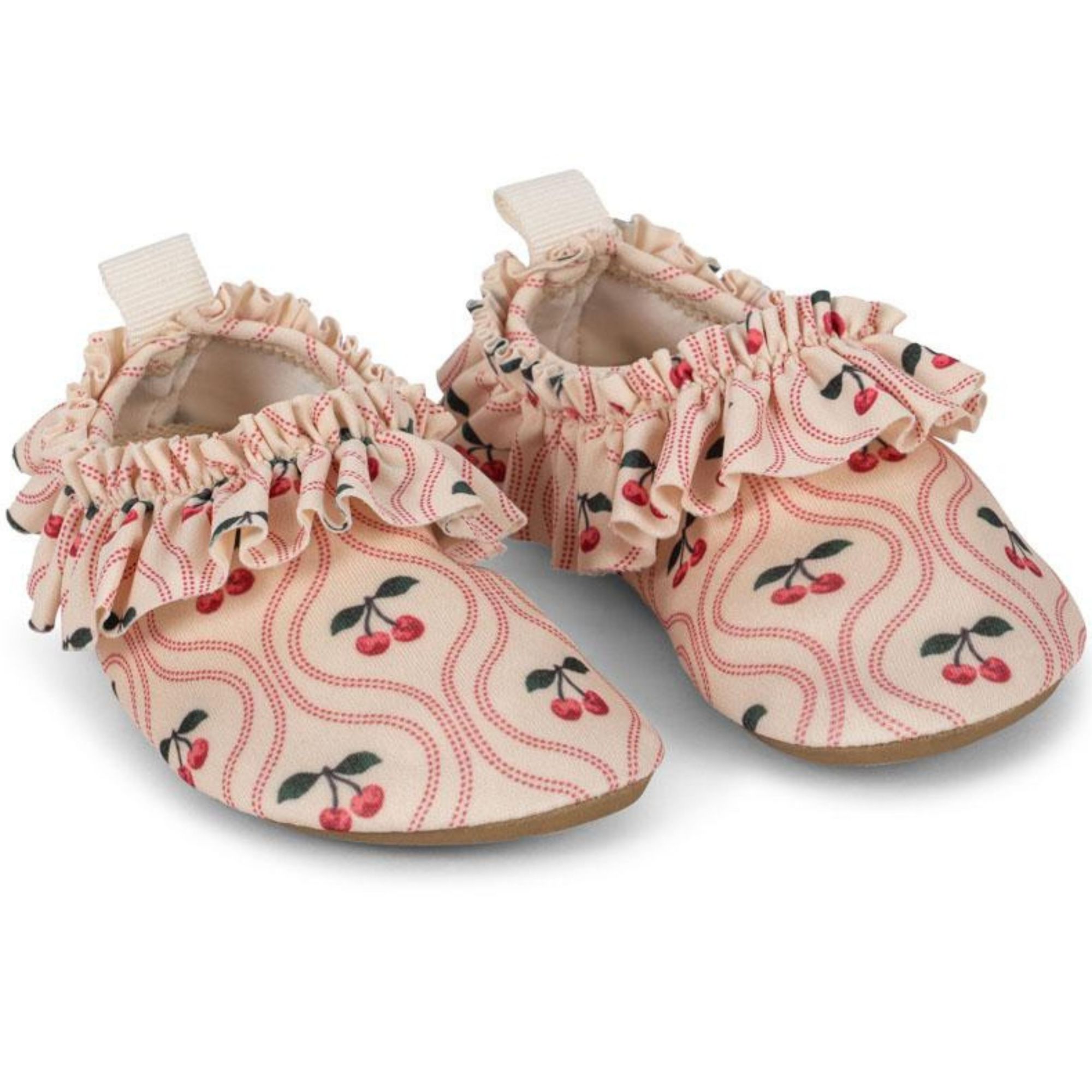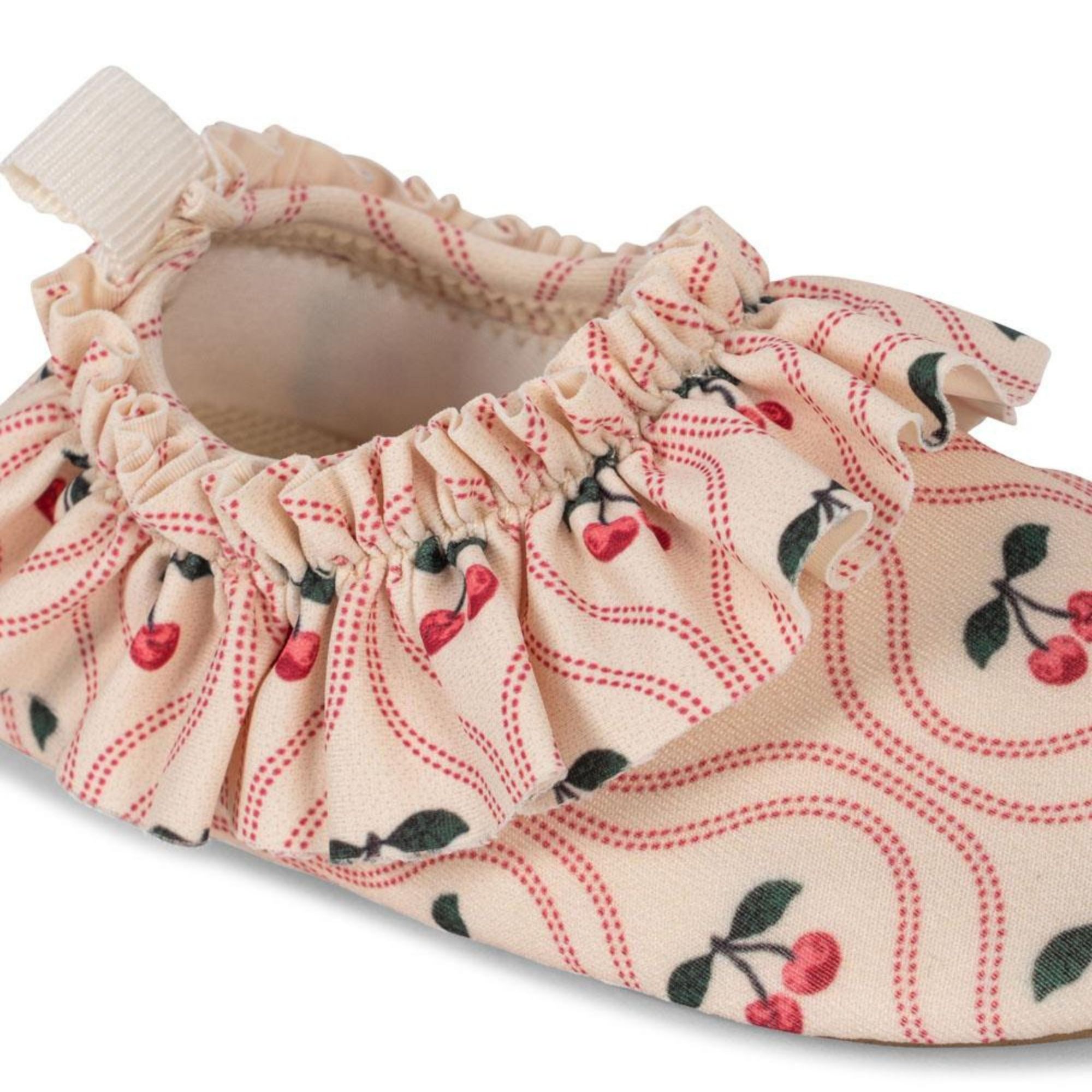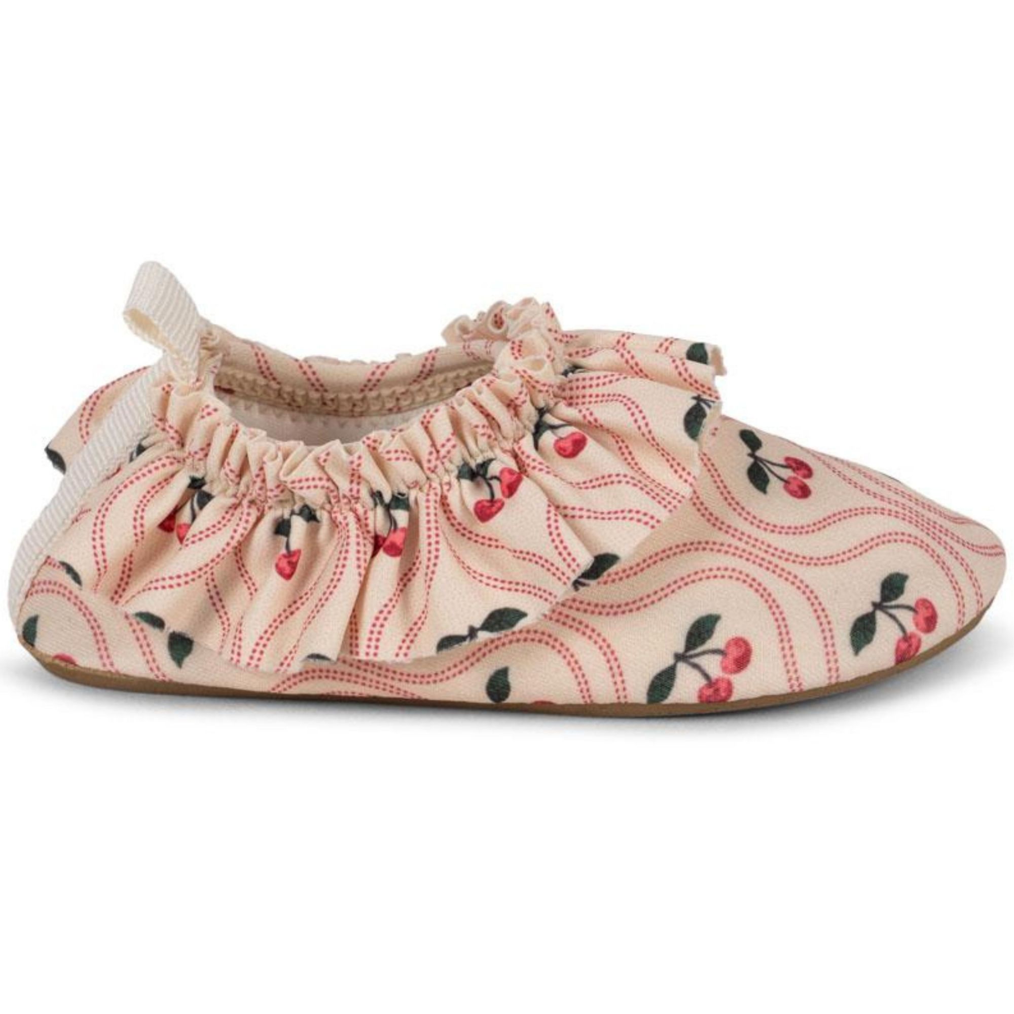 Adoptez les chaussures de bain enfant à volants Merle - Cherry motifs rose 32-33 cm de la marque Konges Slojd. Ces jolies chaussures d'eau seront idéales pour protéger les petits pieds de bébé du soleil et des cailloux dans l'eau ou sur la plage.