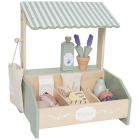 Le stand de marché est spécialement conçu pour initier les enfants au jeu d’imitation. Sa structure en bois solide et son format compact le rendent facile à intégrer dans une chambre ou une salle de jeux. Il peut être complété avec des accessoires de dinette pour enrichir encore plus les scénarios de jeu.