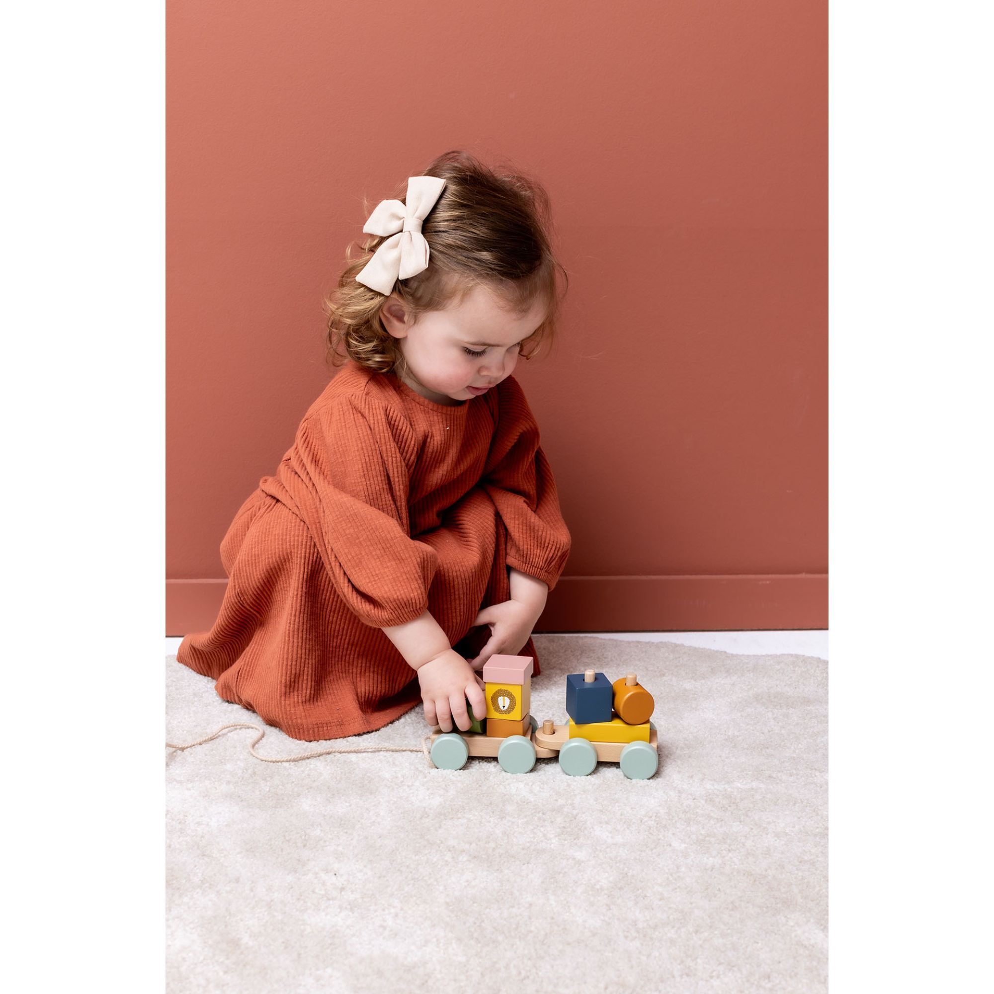 Embarquez pour un voyage plein d’aventures avec le mini train des animaux en bois de Trixie. Ce jouet intemporel invite les enfants à empiler, assembler et tirer leur train pour des heures de jeu libre et créatif. Fabriqué à partir de bois de hêtre certifié FSC et peint avec des couleurs non toxiques, il allie durabilité, sécurité et esthétique. Les blocs colorés à empiler aident votre bébé à développer sa coordination œil-main, sa motricité fine et sa logique, tandis que la ficelle à tirer favorise la marche et la motricité globale.