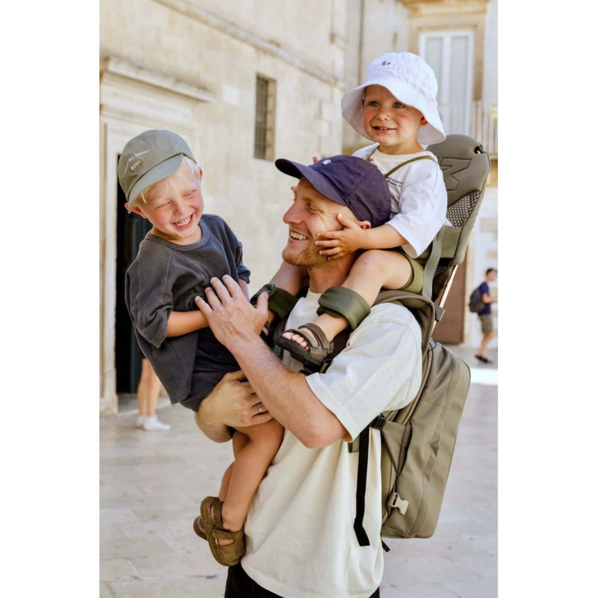 Le MiniMeis G5 a été conçu par des pères norvégiens pour encourager l'exploration. L'enfant est assis naturellement sur vos épaules, sécurisé par un système de harnais, ce qui répartit le poids de manière plus verticale sur votre corps plutôt que de tirer sur vos lombaires. Le poids est distribué sur les épaules et le buste, évitant la sensation de "sac à dos" qui tire vers l'arrière. C'est l'un des modèles les plus transportables. Il se replie à plat (comme un petit ordinateur portable) et pèse environ 1,6 kg. Il dispose d'un harnais à 9 points de fixation pour les plus petits et d'une ceinture ventrale pour les plus grands.
