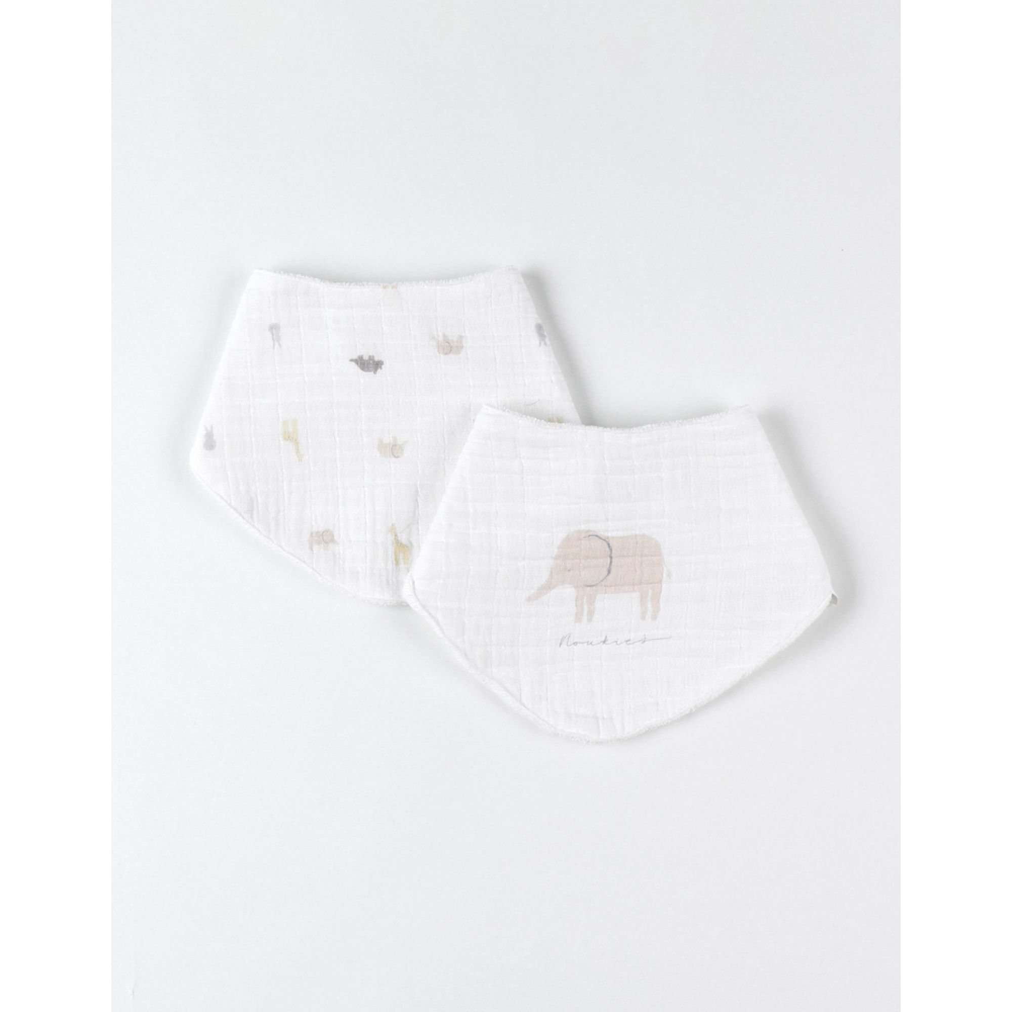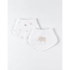 Coloris : Composé d'un bavoir écru à imprimé animalier et un bavoir écru imprimé d'un éléphant.
