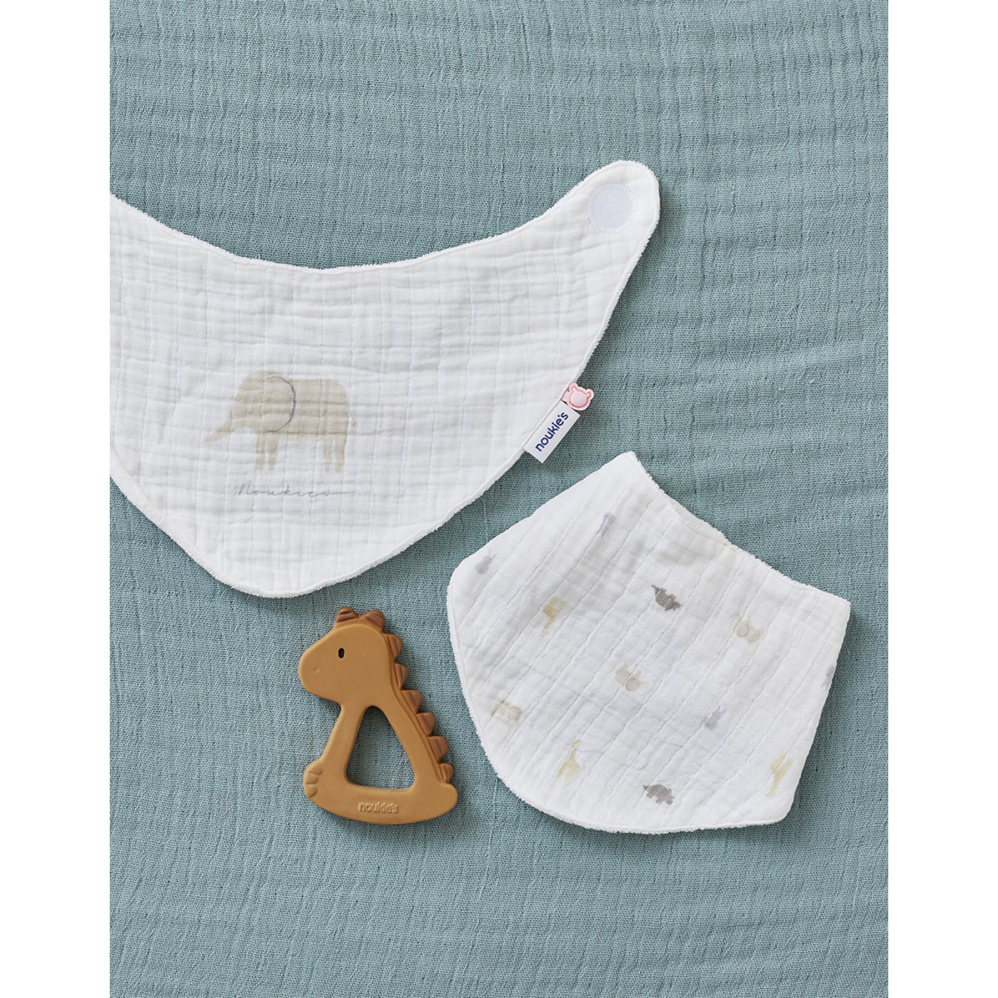 Craquez pour ce lot de bavoirs bandana éléphants écru de la marque Noukie's. L'accessoire idéal pour que votre bébé apprenne à manger comme un grand sans salir ses jolis vêtements ! Protéger les vêtements de votre bébé deviendra ainsi un jeu d'enfant ! Vous pourrez utiliser ces bavoirs Noukie's lors des repas mais aussi lorsque votre bébé bave beaucoup.