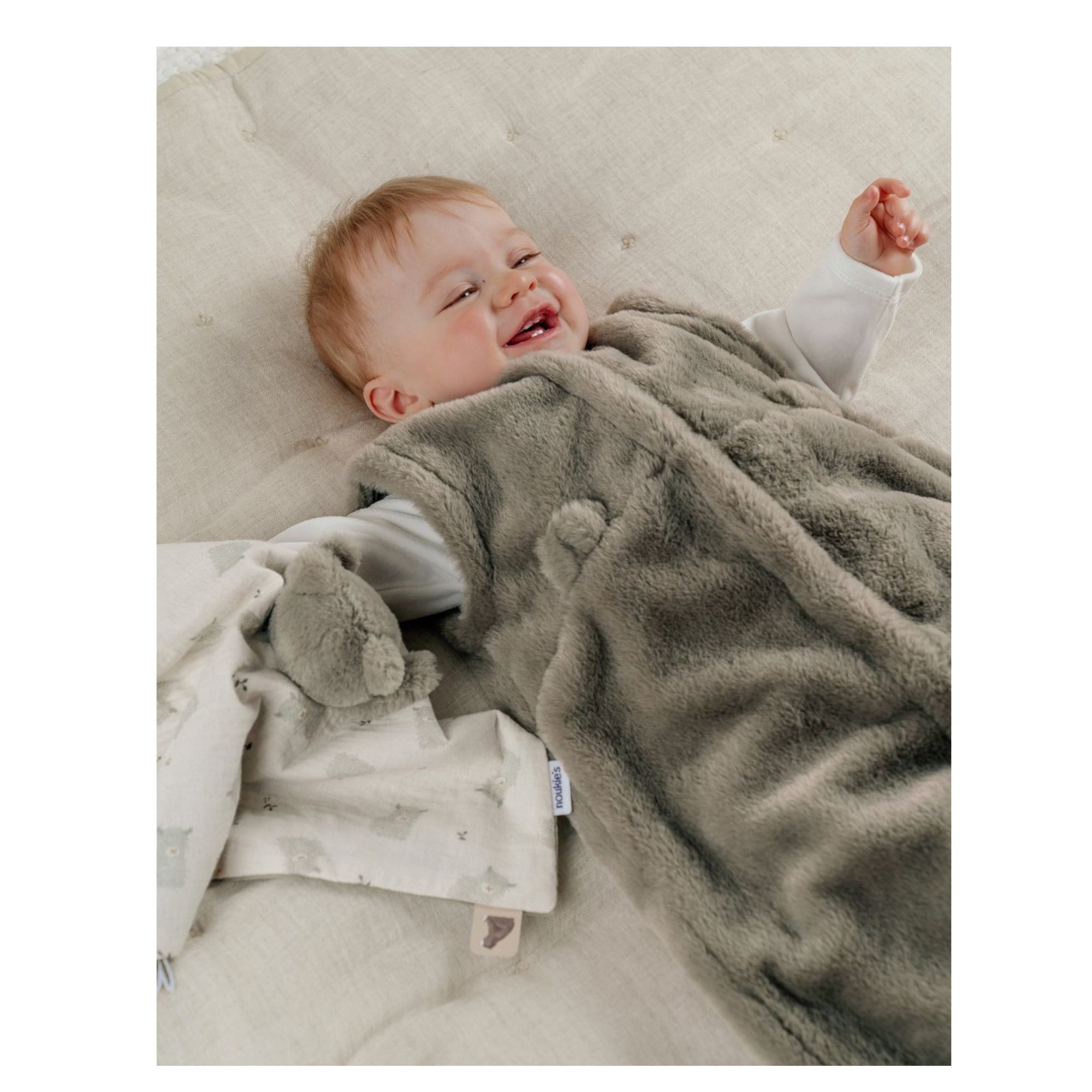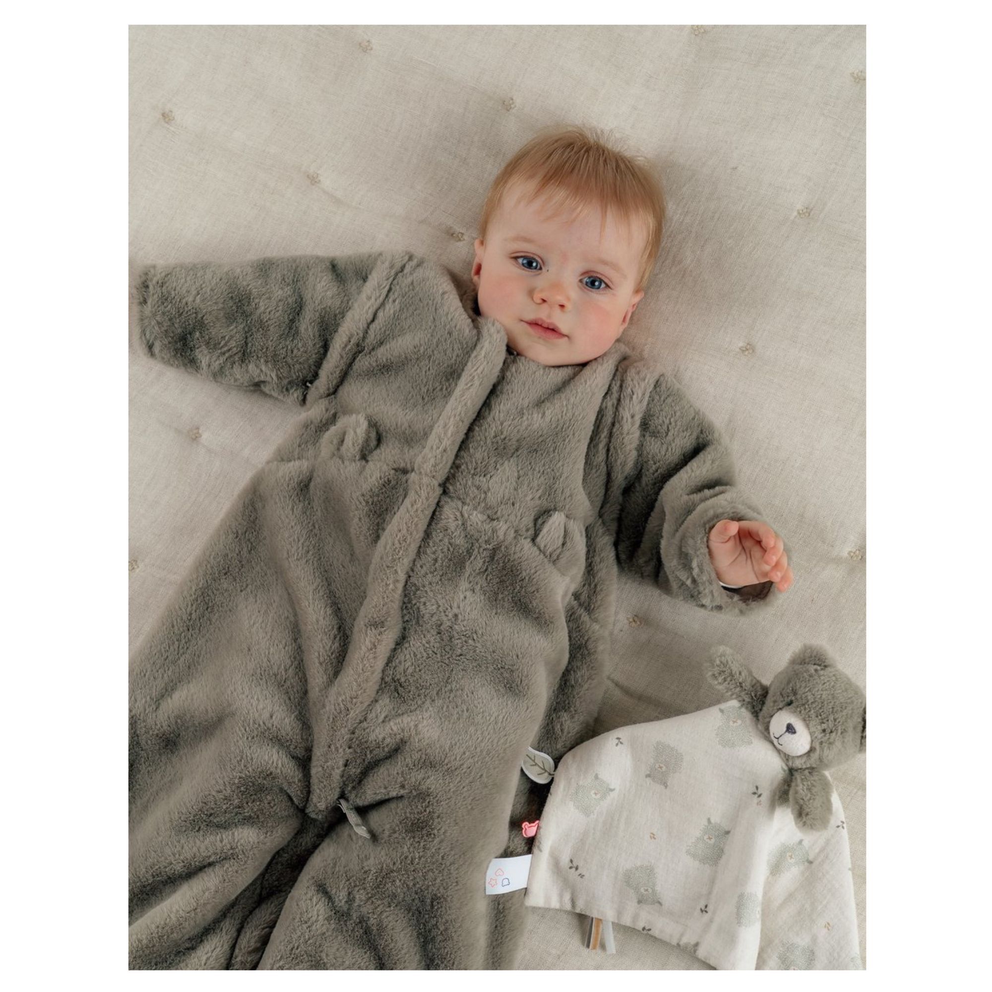 Offrez à votre bébé des nuits douces et confortables avec la gigoteuse en fausse fourrure kaki Mix & Match de la marque Noukie's, un véritable cocon de chaleur et de tendresse. Conçue pour accompagner bébé aussi bien à la maison qu’en déplacement, elle garantit un endormissement paisible et des siestes bien au chaud, en toute sécurité. Grâce à sa matière en fausse fourrure écrue ultra-douce, cette gigoteuse procure une sensation de confort enveloppante, idéale pour les saisons fraîches. Pratique et évolutive, elle s’adapte aux enfants de 65 à 95 cm, et intègre des détails ingénieux pour faciliter le quotidien : boutons pressions bien placés, ouverture à l’entrejambe, manches amovibles et indice TOG ajusté. Ses petites oreilles en relief ajoutent une note ludique et attendrissante, parfaite pour éveiller la curiosité de bébé tout en apportant une touche unique au style Mix & Match.
