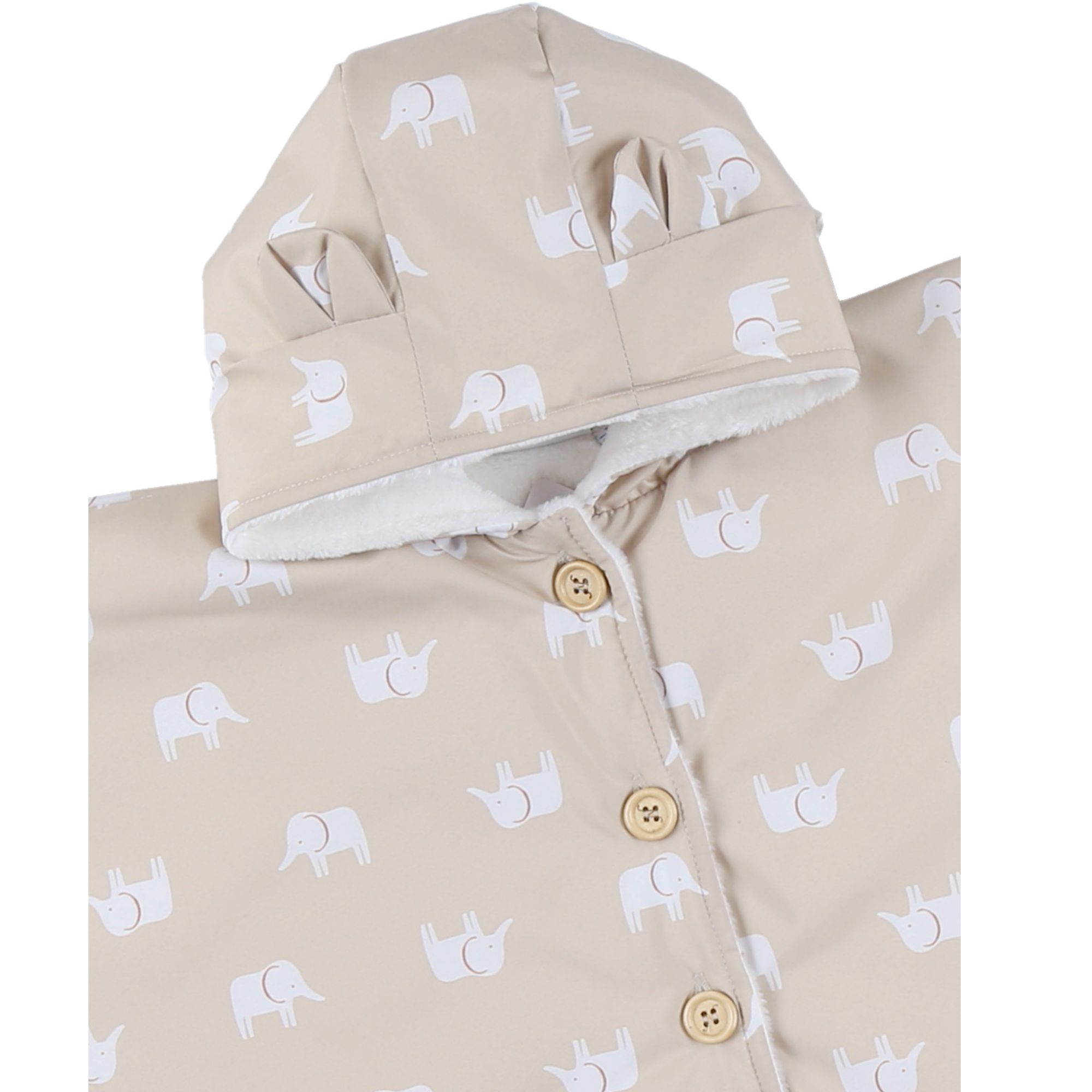 Offrez à votre bébé un cocon de douceur et de protection avec le poncho imperméable beige de la marque Noukie’s. Orné de jolis motifs d'éléphant, ce poncho combine élégance, confort et praticité pour accompagner bébé dans toutes ses aventures. Son extérieur déperlant protège efficacement des petites averses, tandis que sa doublure en sherpa moelleux l’enveloppe d’une chaleur douce et réconfortante. Conçu pour être facile à enfiler et suffisamment ample, il laisse bébé bouger librement tout en restant bien emmitouflé. Sa capuche à oreilles de lapin et ses boutons en bois naturel ajoutent une touche ludique et raffinée, fidèle à l’univers tendre de Noukie’s. Grâce à ses pressions latérales, le poncho reste bien ajusté, assurant confort et liberté de mouvement. Léger, pratique et irrésistiblement mignon, c’est l’allié idéal pour les promenades fraîches et les journées d’hiver.