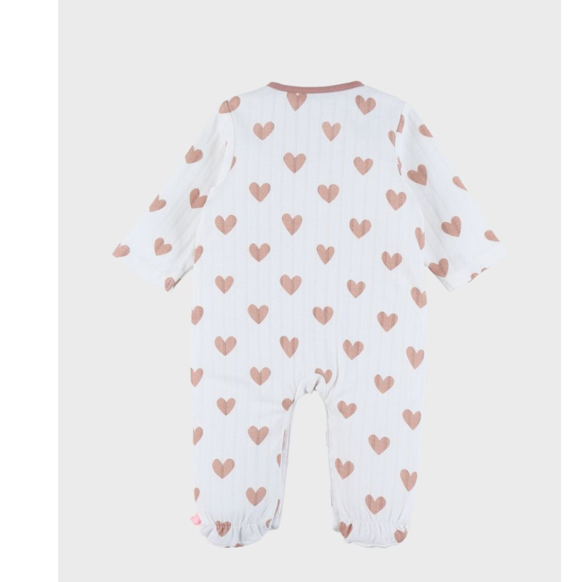 Découvrez ce pyjama bébé en jersey de coton de Noukie's qui séduit par son style intemporel et sa confection soignée. Il associe subtilement maille côtelée et détails pointelle pour un rendu délicat et élégant. Son imprimé de petits cœurs apporte une touche tendre et poétique. Pensé pour le confort de votre bébé et la praticité des parents, il accompagne aussi bien les nuits que les moments de détente, tout en offrant une grande liberté de mouvement.